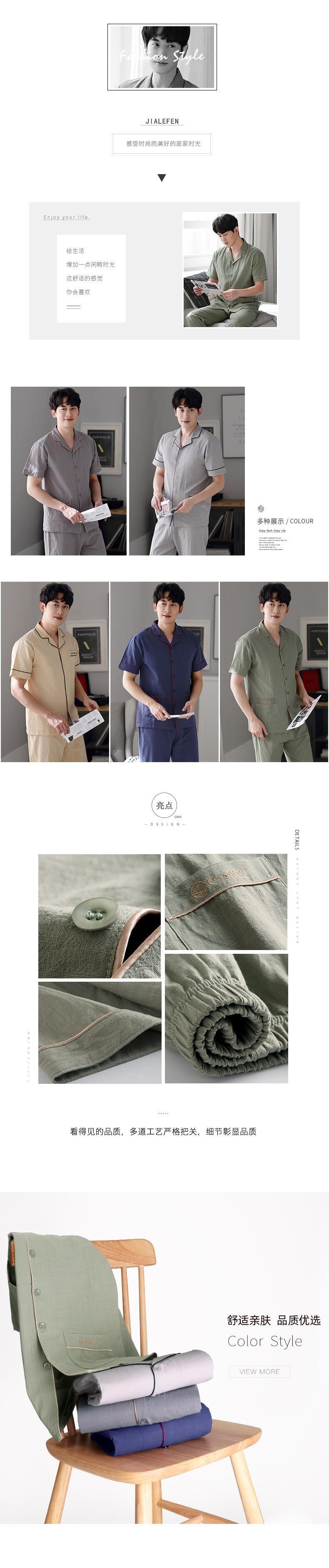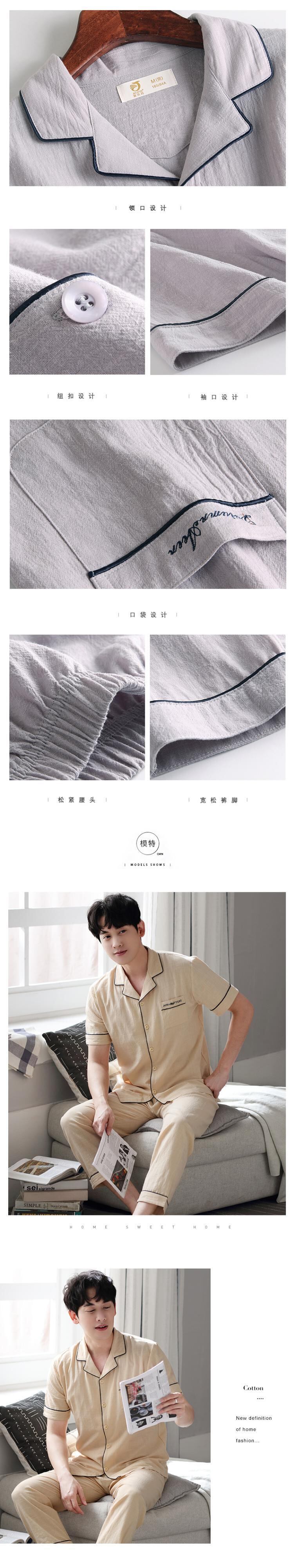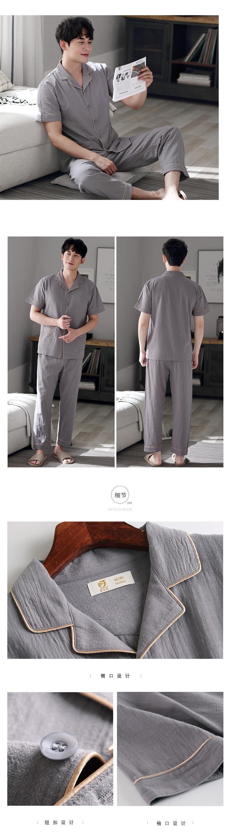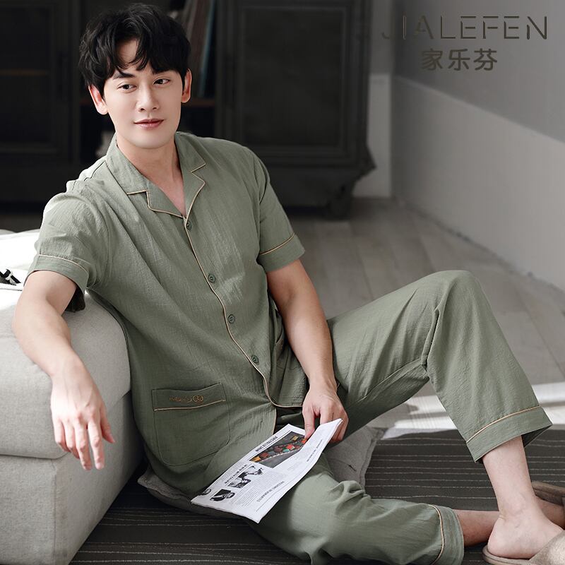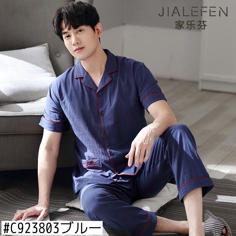 綿とリネンのパジャマを編んだメンズサマーコットン半袖パンツ夏の薄手の家庭服ルーズプラス肥料プラスサイズ jial2241775284