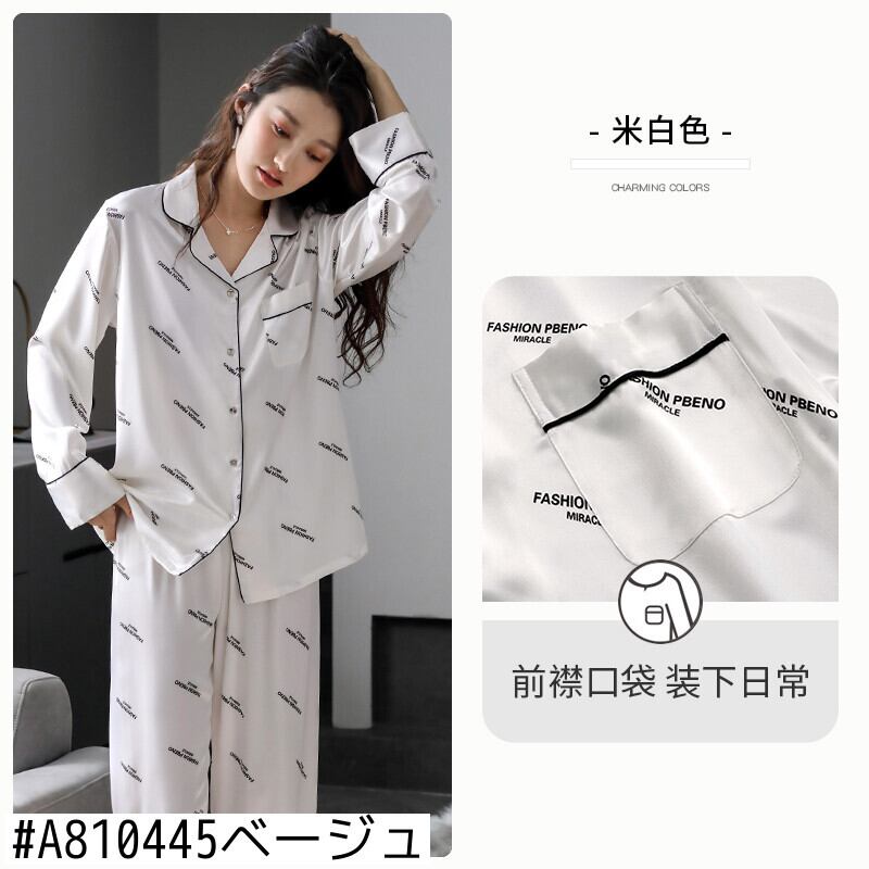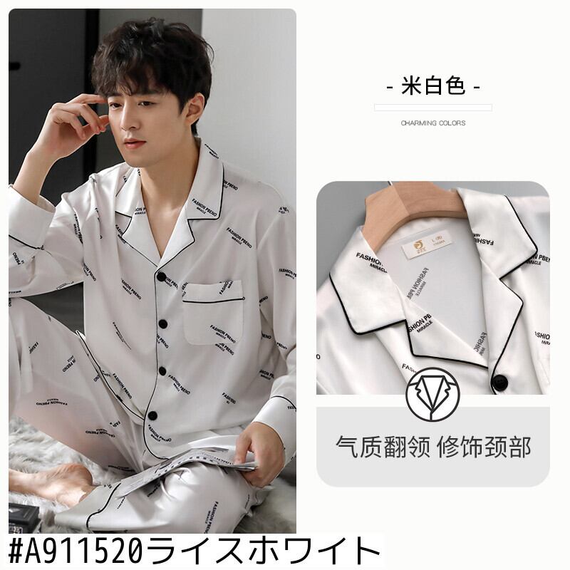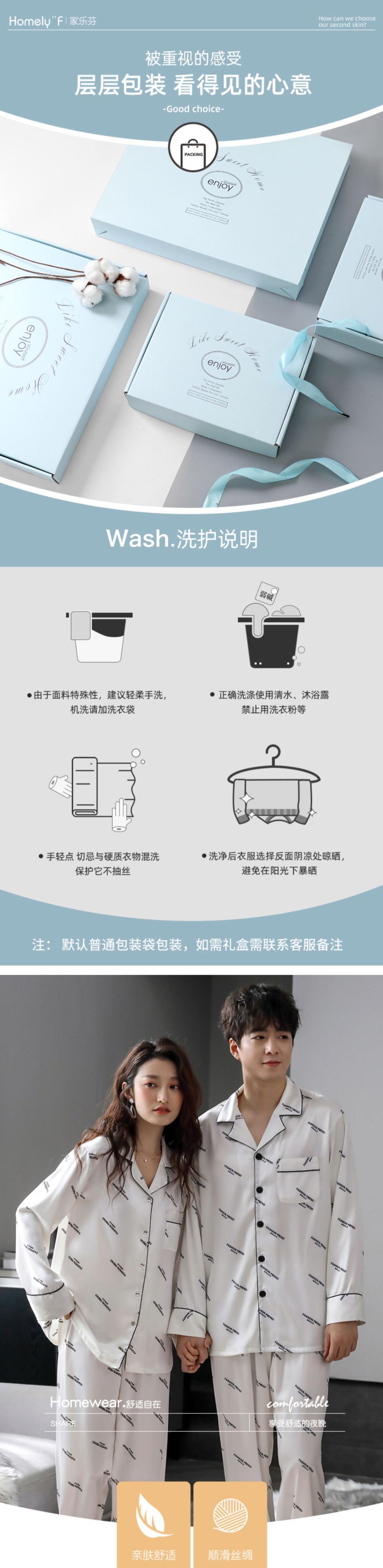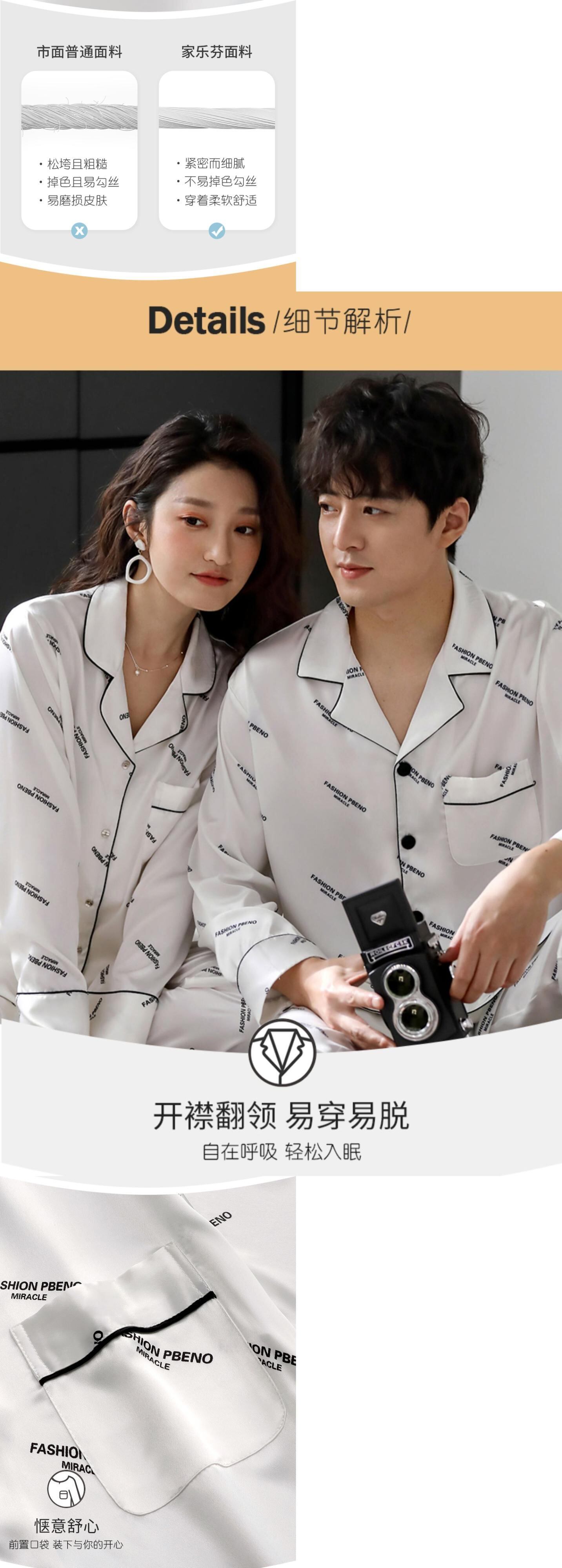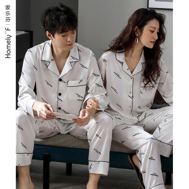 カップルパジャマメンズ春夏シミュレーションシルクアイスシルク長袖ホームウェアレディース春秋秋薄スーツ jial71746625476