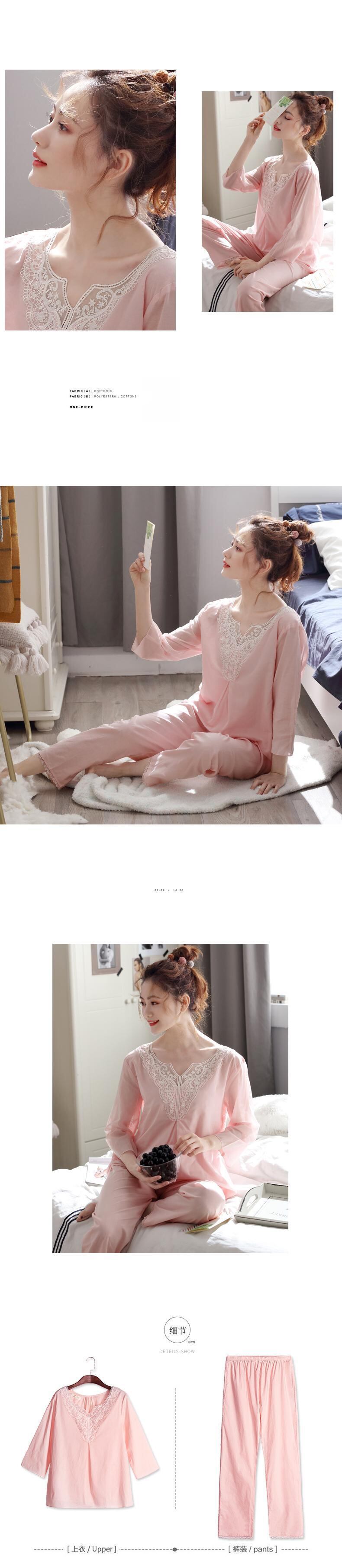 パジャマ春夏長袖コットンホームウェア夏薄綿織綿糸プルオーバーeseスーツ jial80991336757