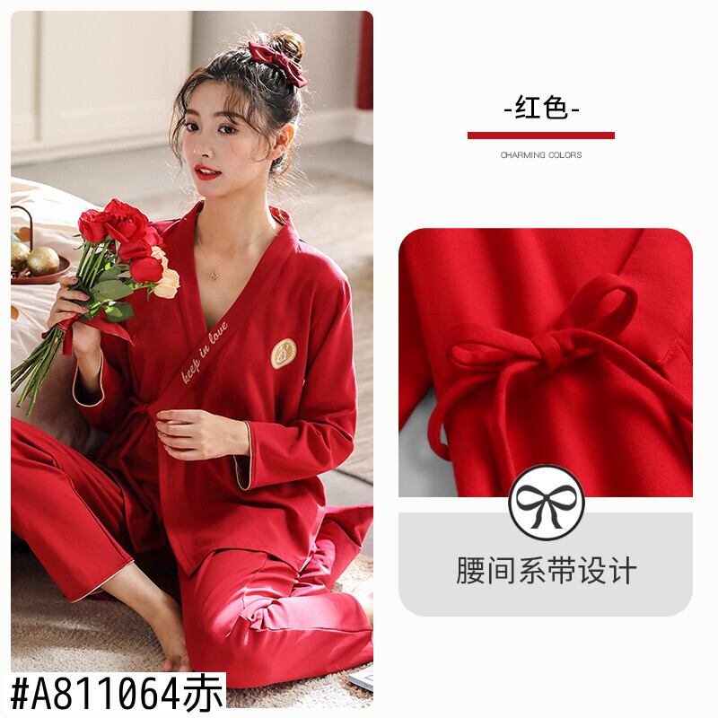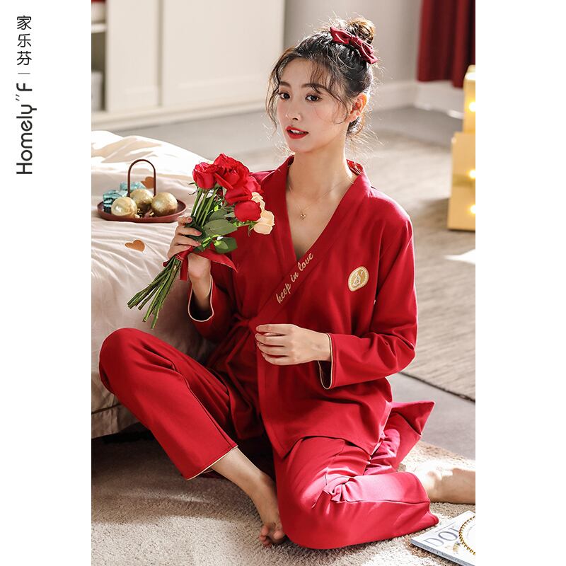 パジャマ春秋秋コットン長袖ホームウェアコットンビッグレッドベンミングイヤーeseese jial35020717073