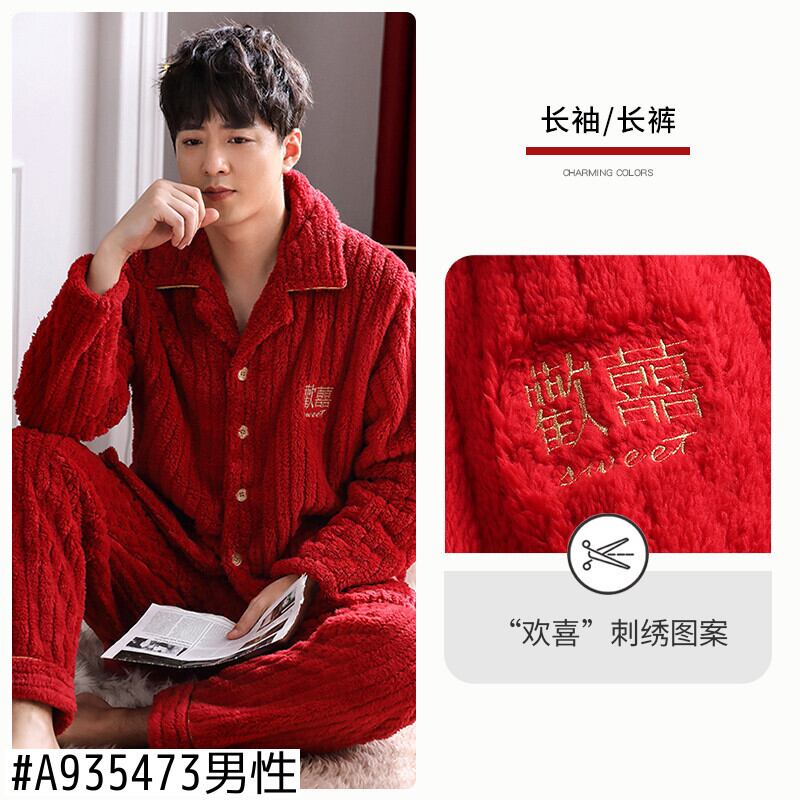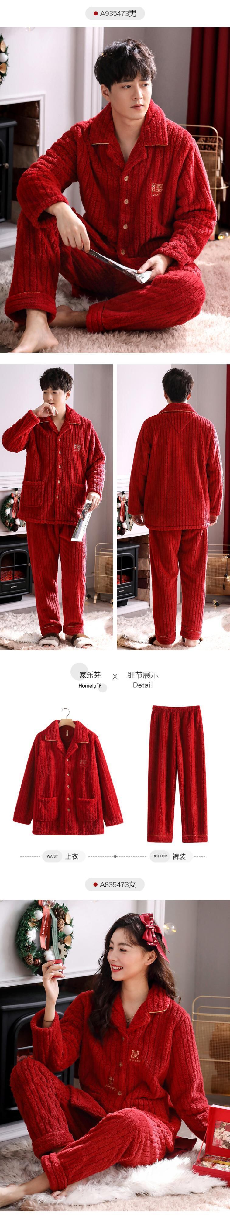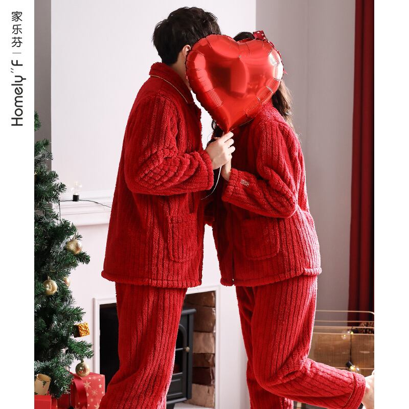 カップルのパジャマの男性と女性の秋と冬の珊瑚のベルベットの肥厚とベルベットのフランネルの結婚式の赤いスーツ jial1151970632