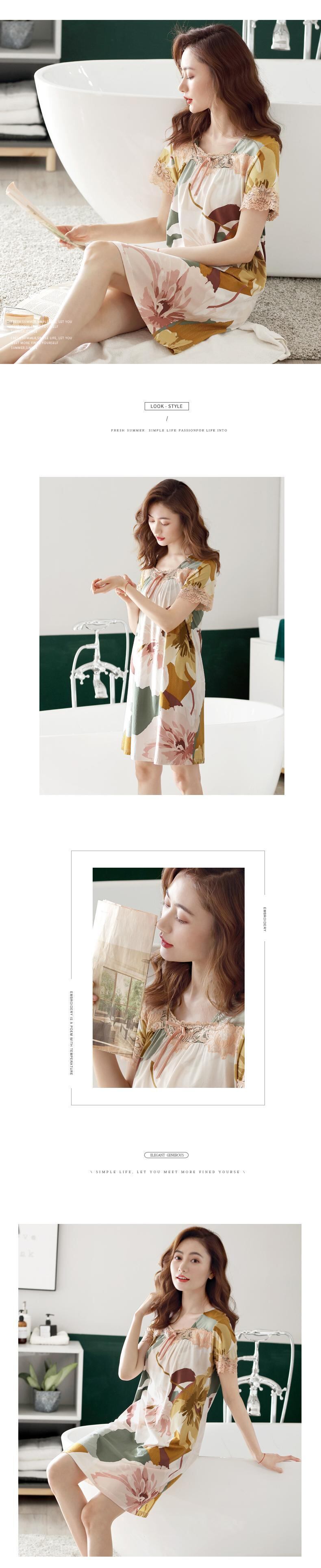 夏のパジャマレディースネグリジェ夏の薄いモーダル半袖中年の母親の女性は緩いプラス肥料プラスサイズ jial45358270522