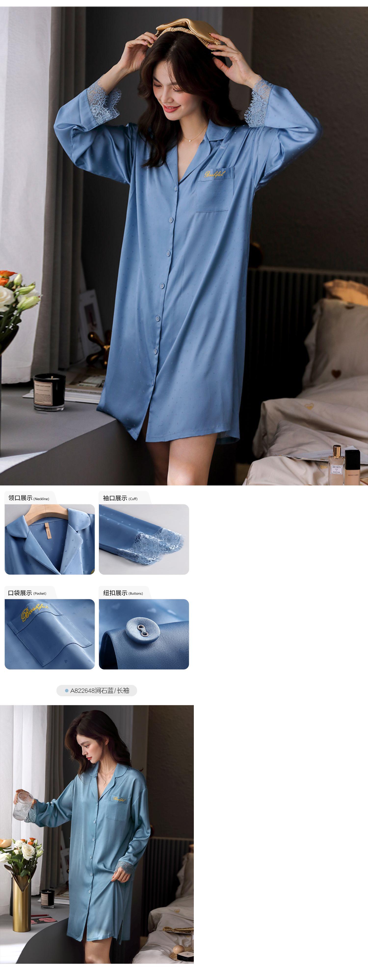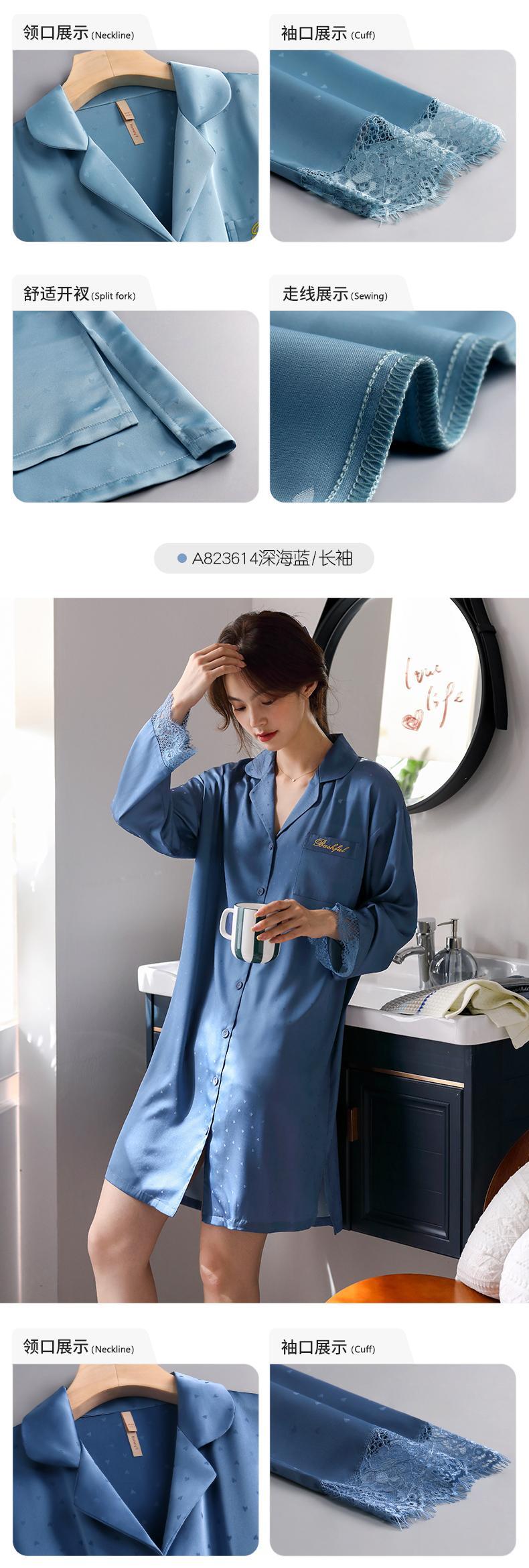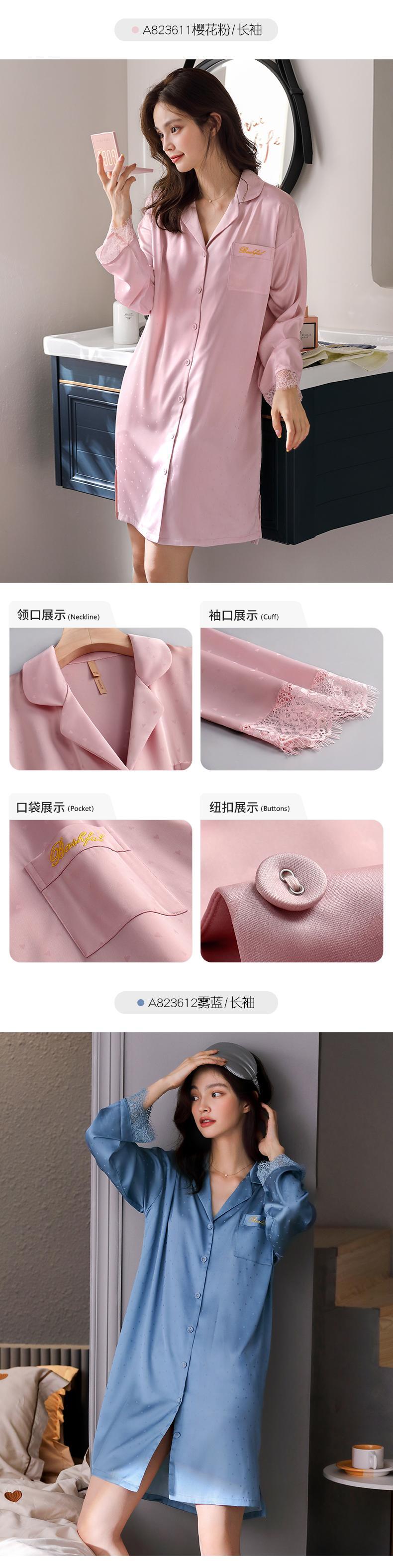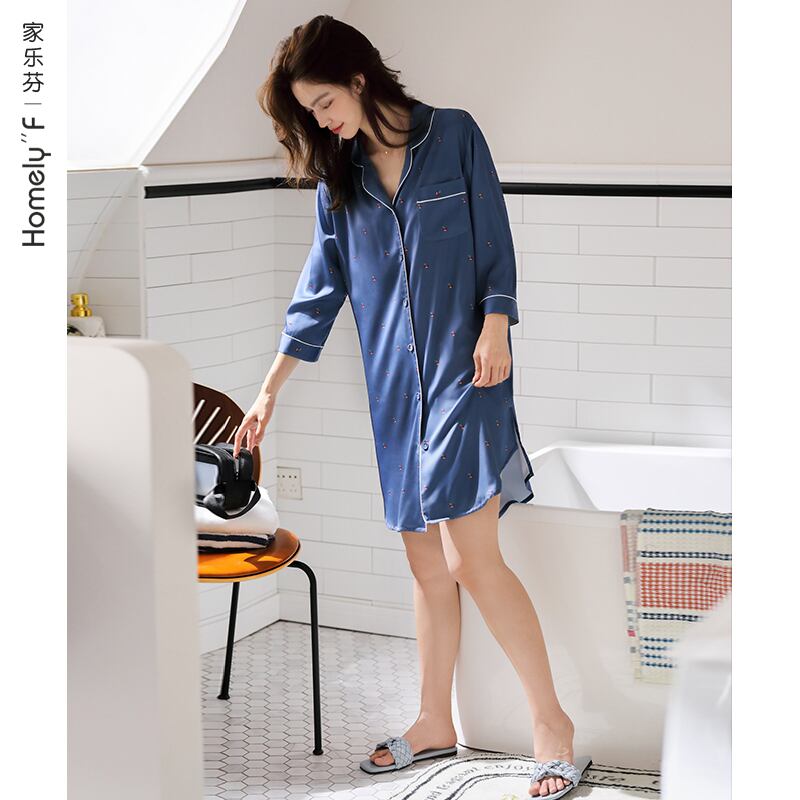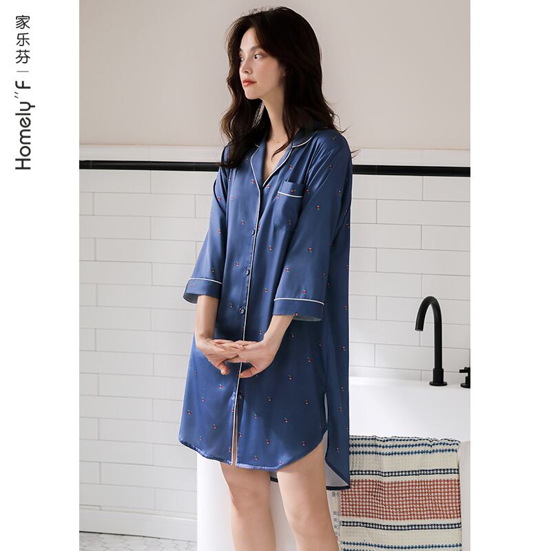 ネグリジェレディースパジャマ春夏アイスシルク七分袖春秋薄手のカーディガンシャツ夏シミュレーションシルクロング jial66101782887