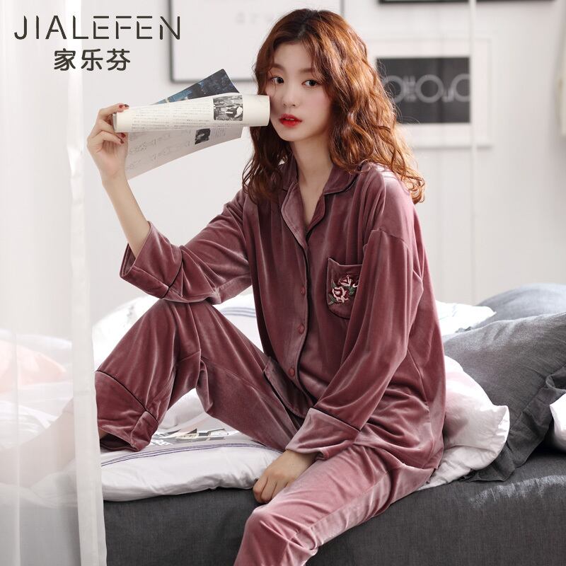 パジャマ春と秋のスタイル秋のゴールドベルベット長袖ホームウェア秋と冬の薄いセクションは外に出て外で着ることができます jial1583037570