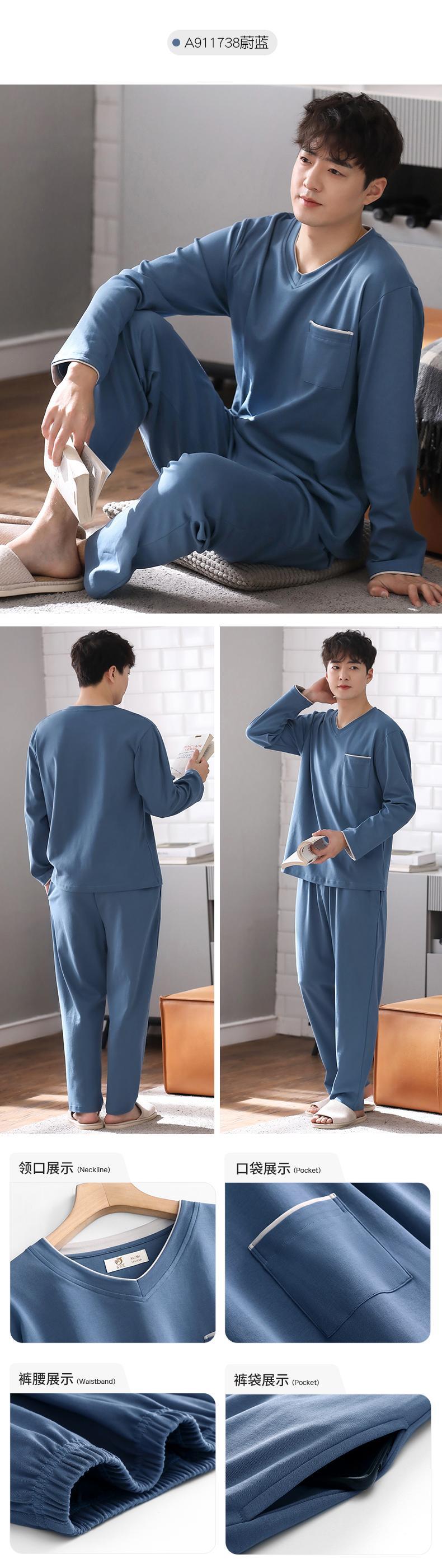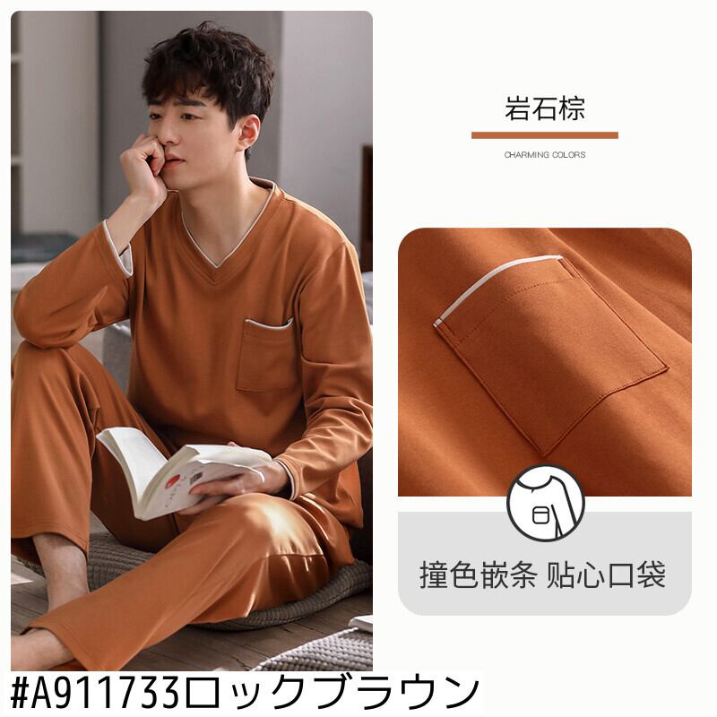 パジャマメンズ春秋春秋ピュアコットン長袖ホームウェアメンズコットン春夏薄手のスーツ jial74726598939