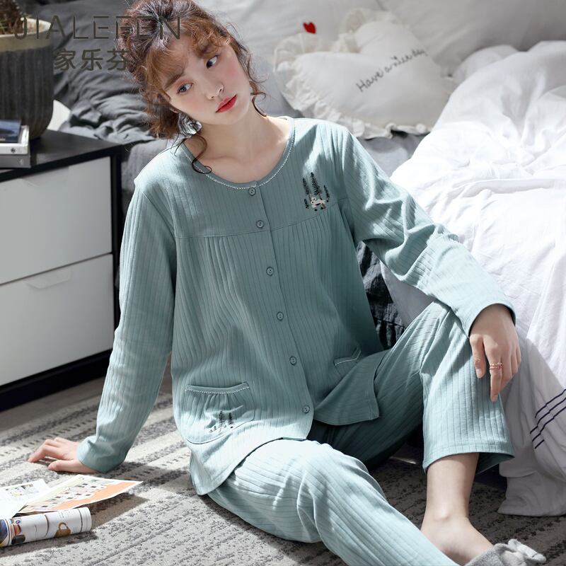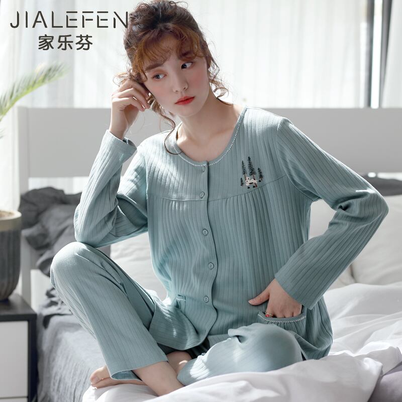 パジャマ春秋秋秋ピュアコットン長袖ホームウェアコットンバージョンフレッシュルーズラージサイズスーツ jial43667702196