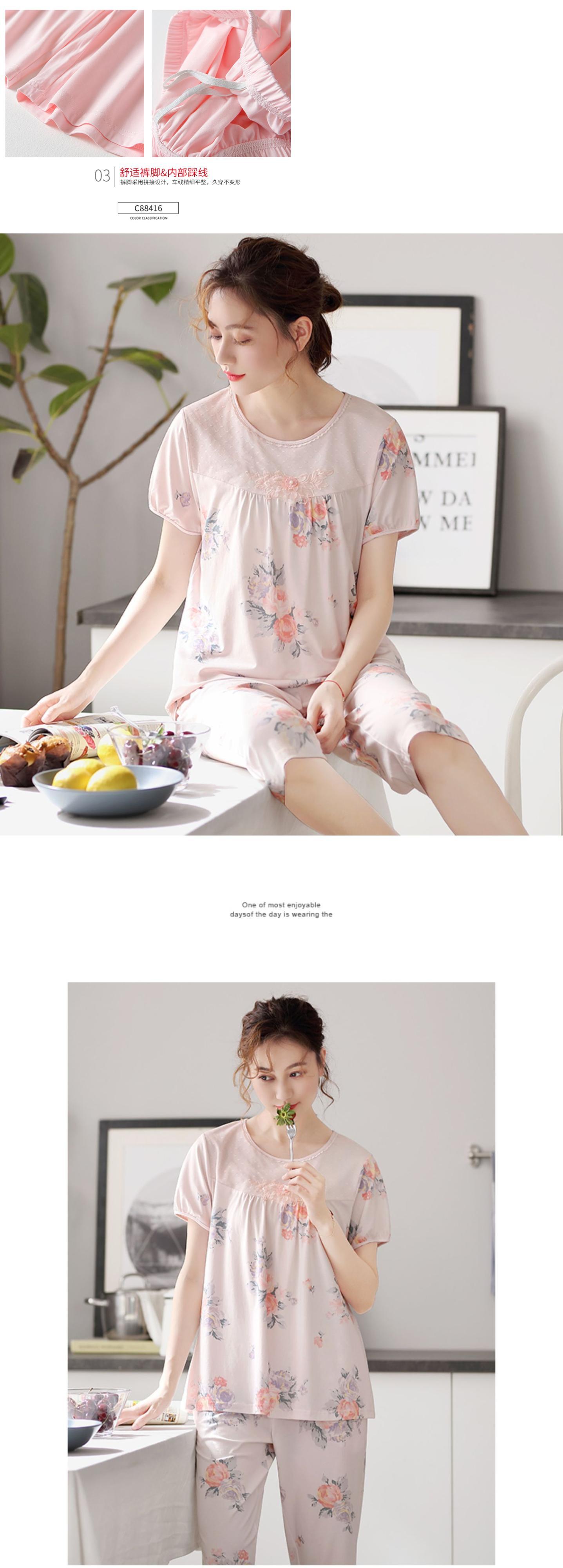 パジャマ女性の夏モーダル半袖ショーツ家庭服夏薄片ルースプラス肥料プラスサイズマザースーツ jial59557380980