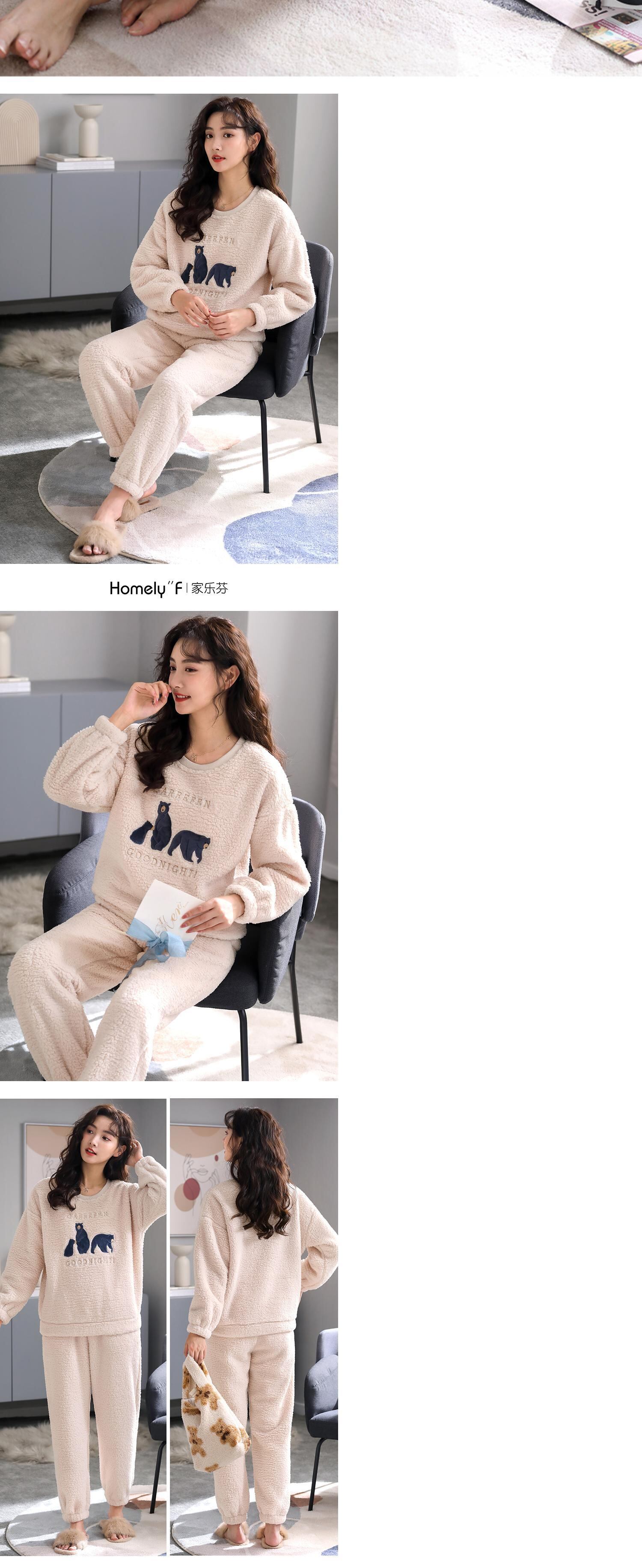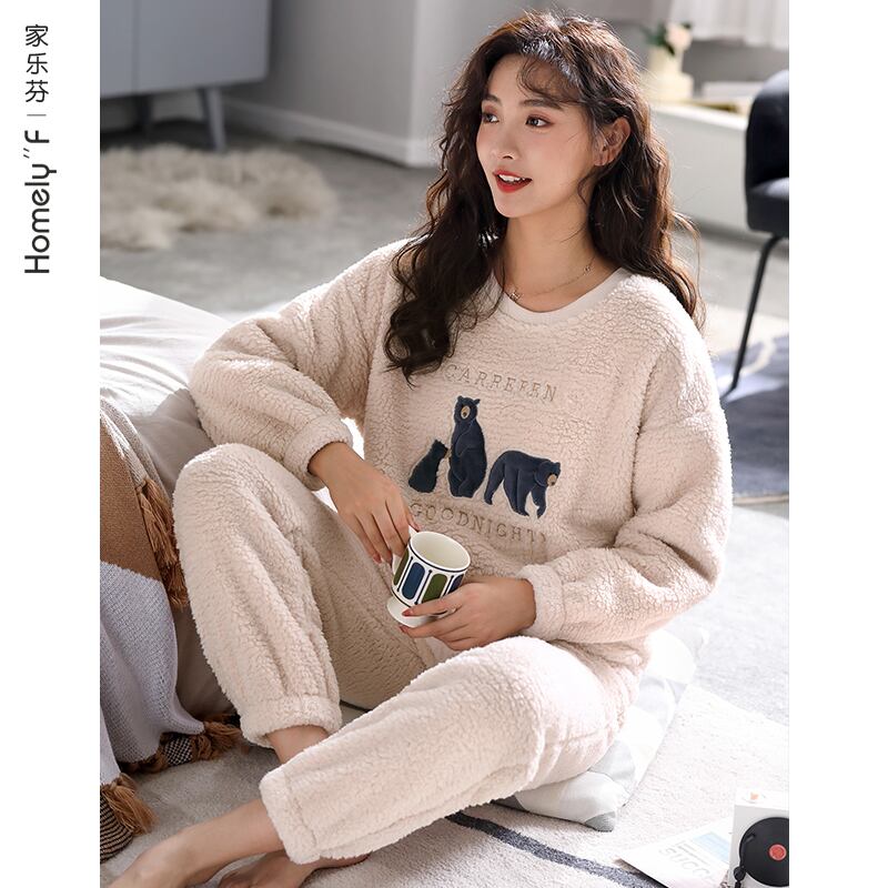 パジャマ女性の秋冬モデル冬のフランネルを厚くし、ベルベットのコーラルフリースの家庭服冬の大きいサイズはスーツの外で着用することができます jial89524464596