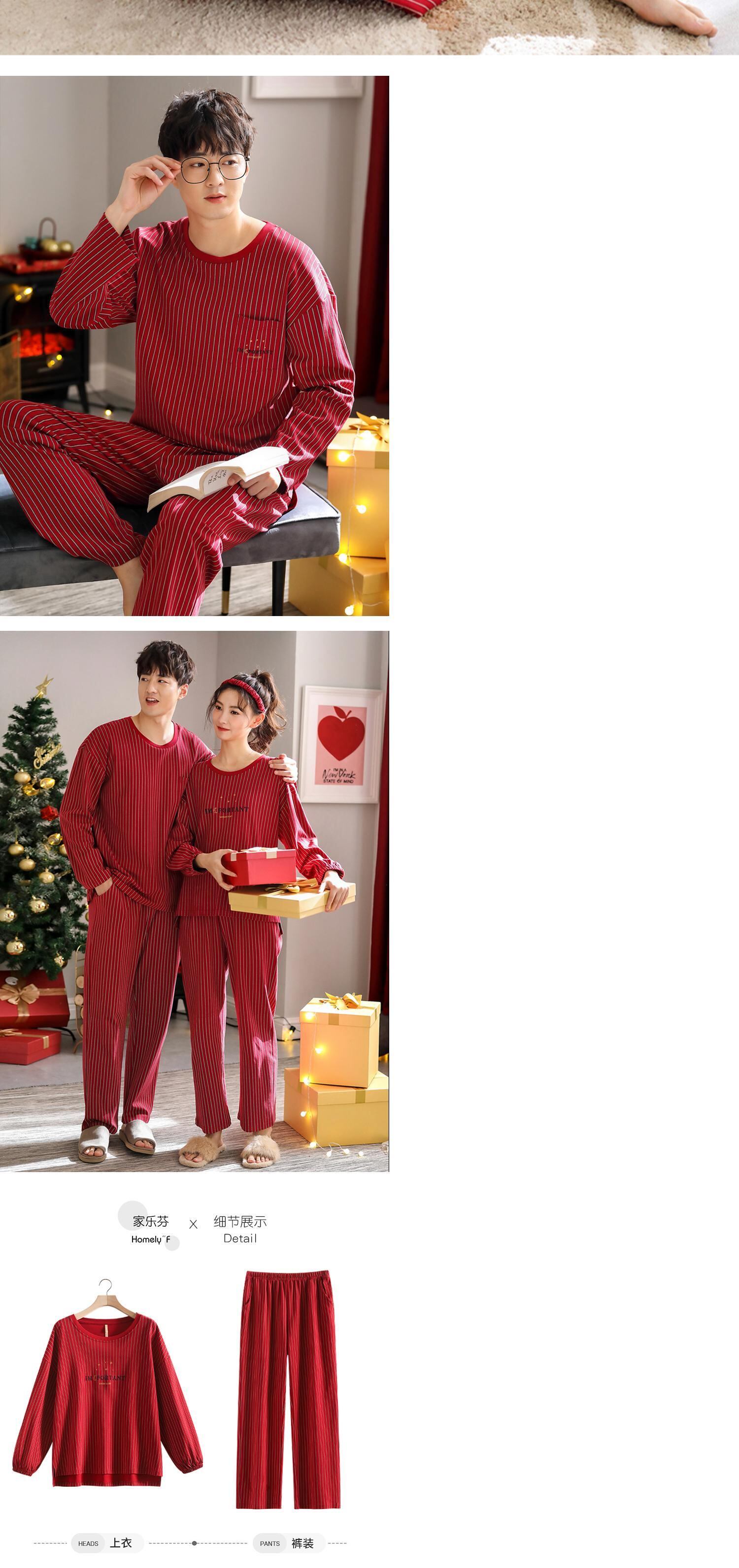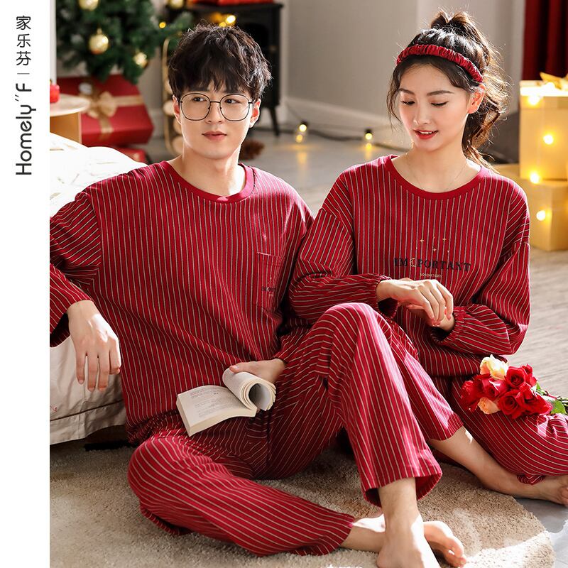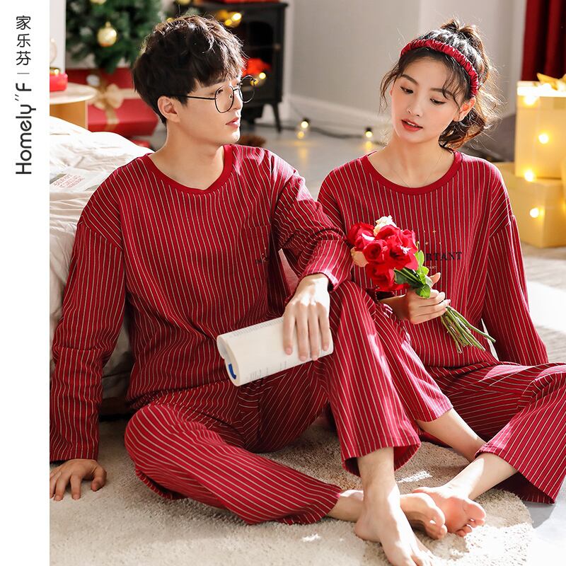 結婚式のパジャマ新婚カップルは大きな赤い綿の長袖の女性の家庭服の男性の春と秋の秋の花嫁に合います jial5285040238