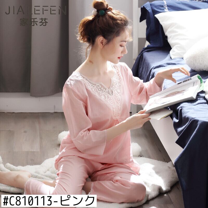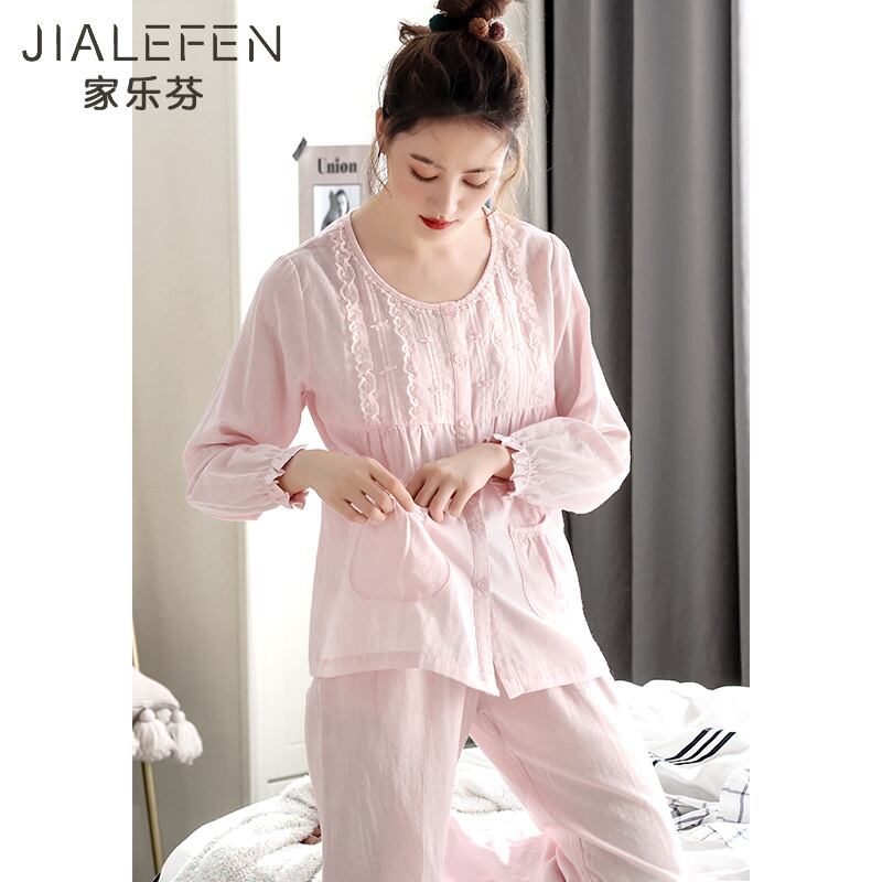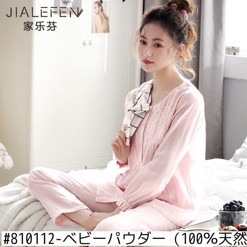 パジャマ春夏長袖夏薄手綿ガーゼ綿ホームウェア春大サイズママスーツ jial19165922145
