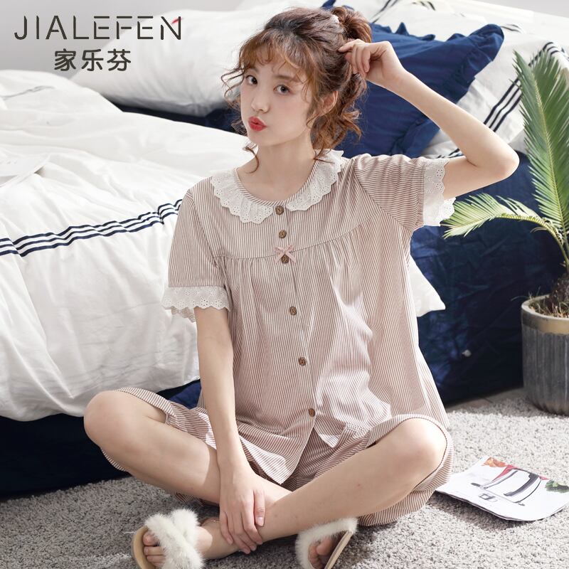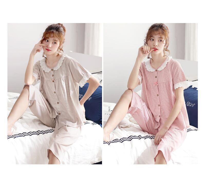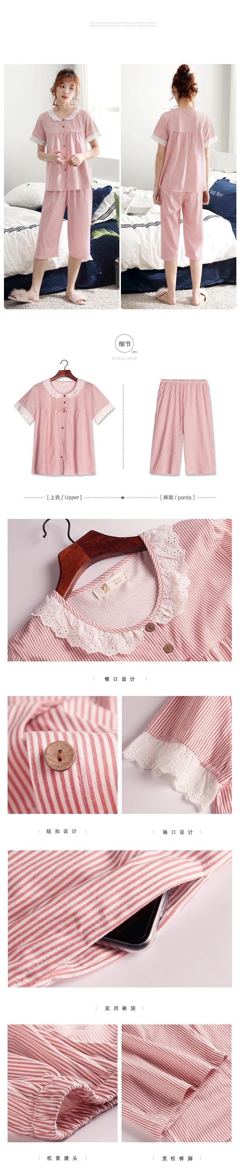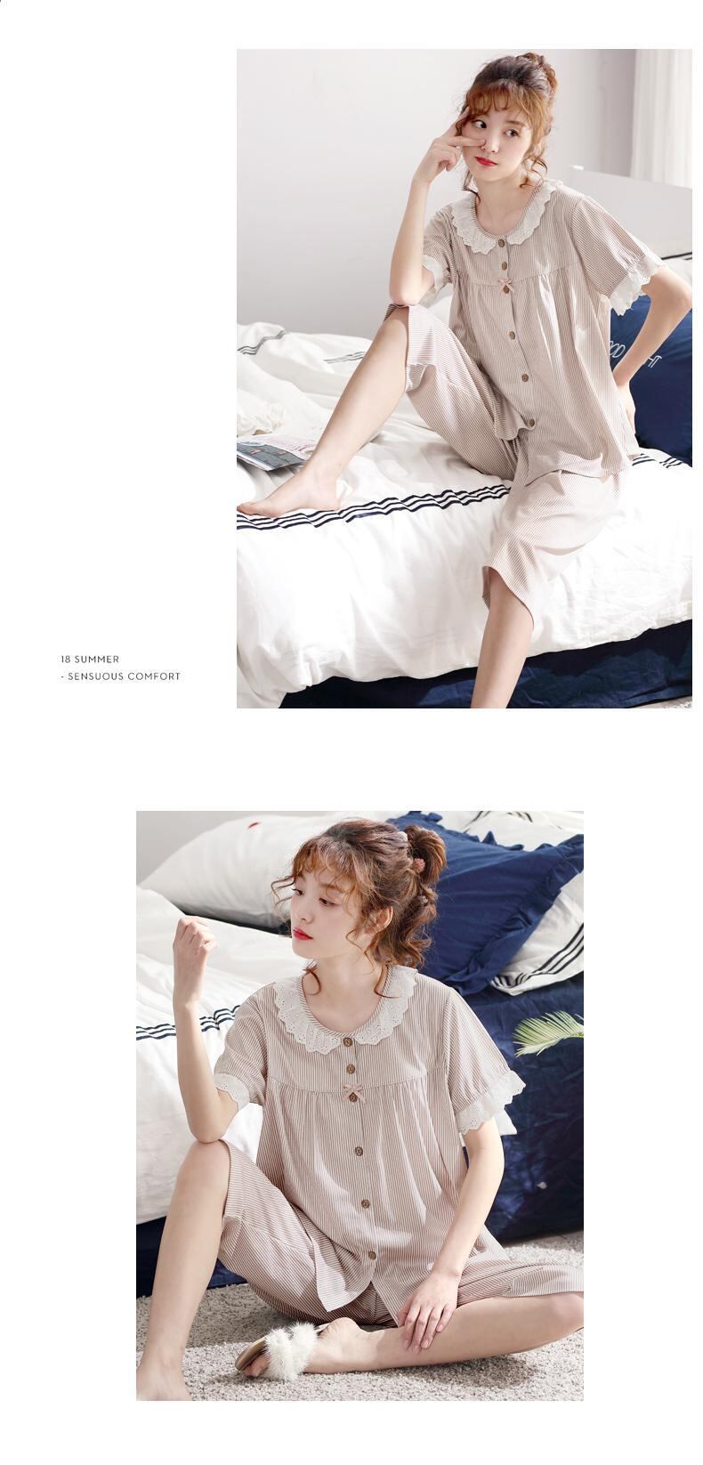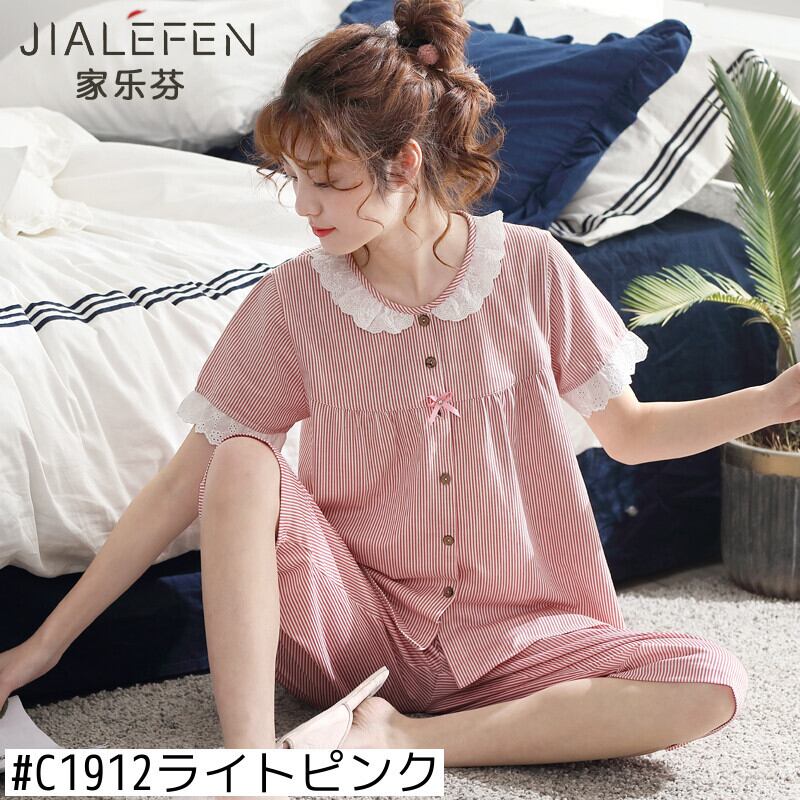 パジャマサマーコットン半袖クロップドパンツコットンサマーシンホームウェアカーディガンフレッシュスーツ jial17819598469