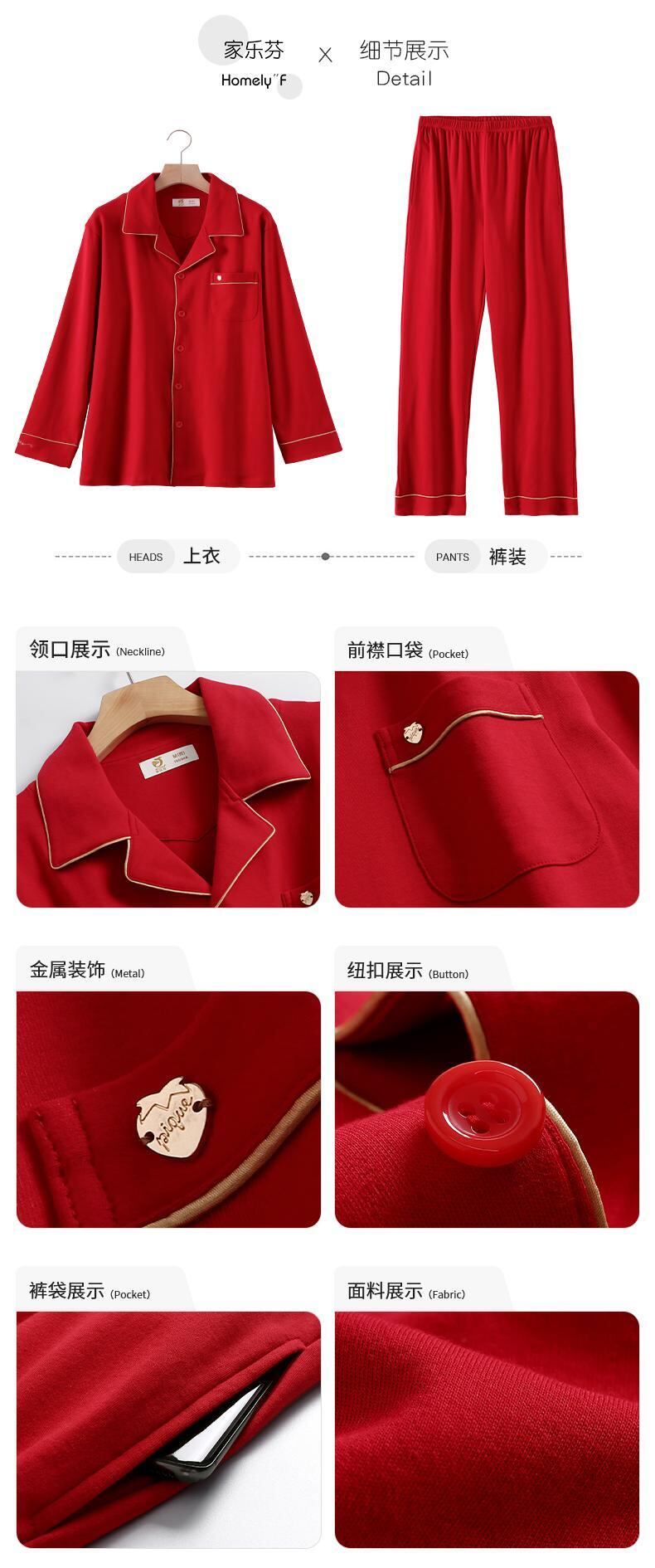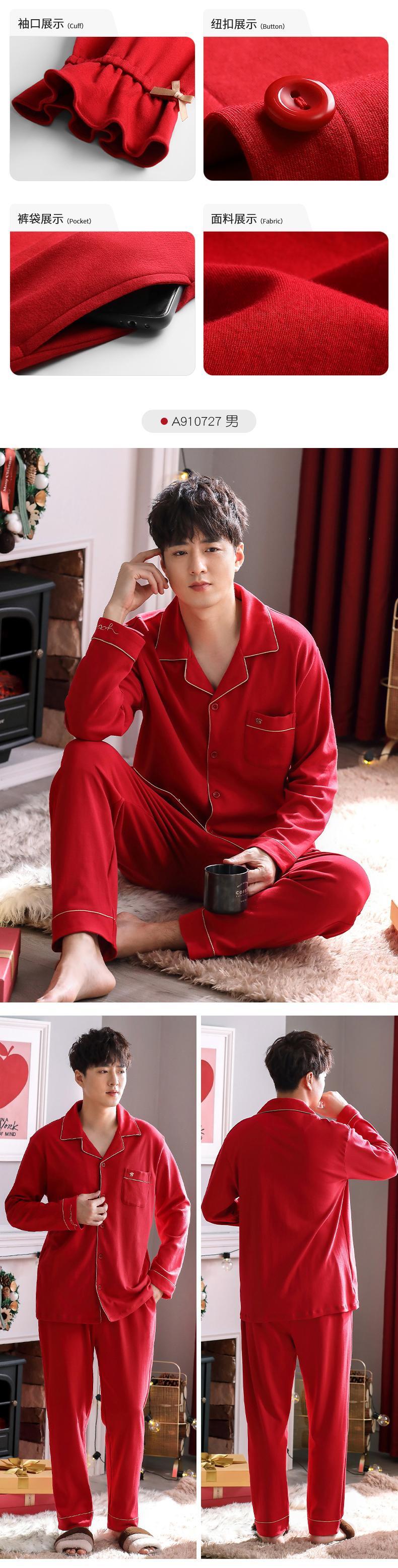 結婚式のパジャマ新婚カップルは大きな赤い綿の長袖の女性の家庭服の男性の春と秋のブライダル結婚式に適しています jial54640877609