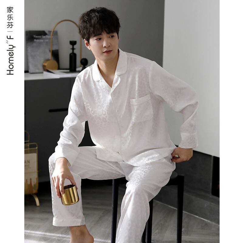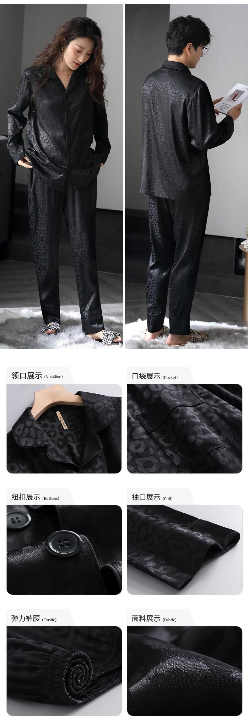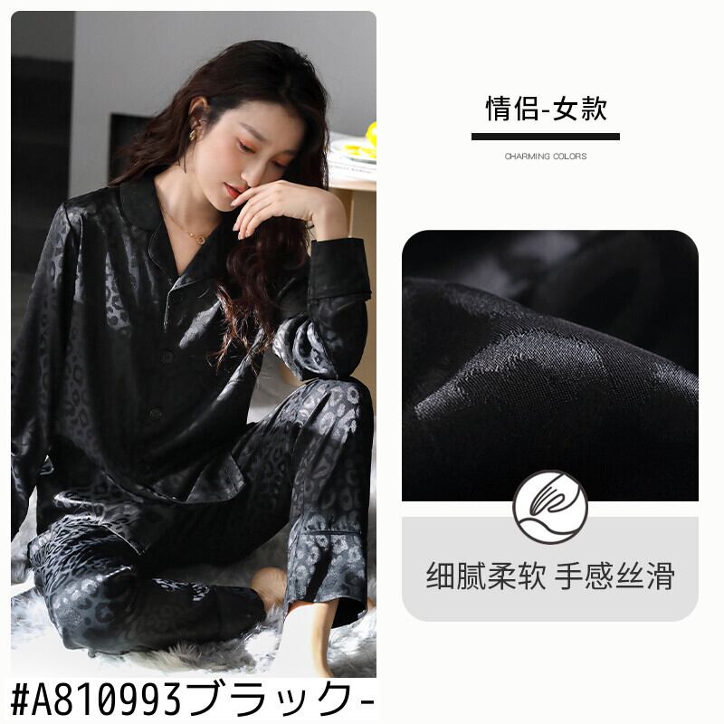 パジャマ春/夏シルクアイスシルク長袖ホームウェア春/秋薄いセクションシミュレートされたシルクホワイトヒョウ柄のスーツ jial68305031539