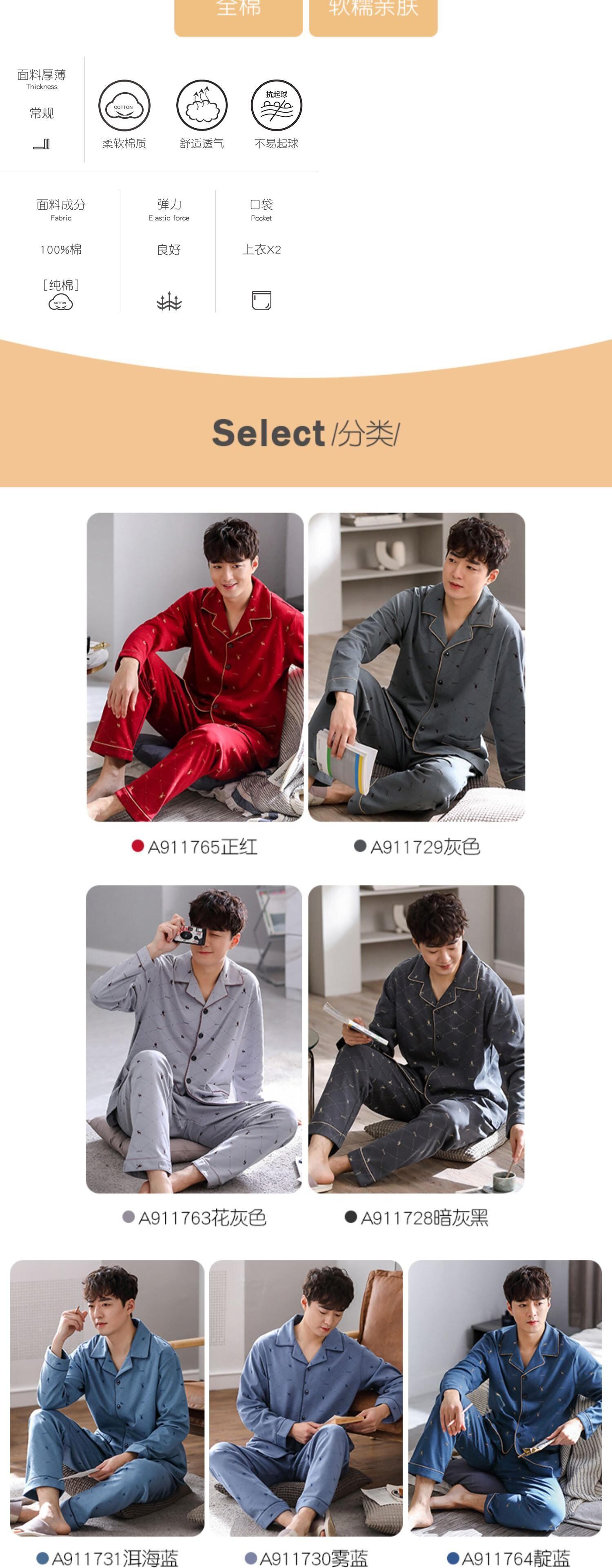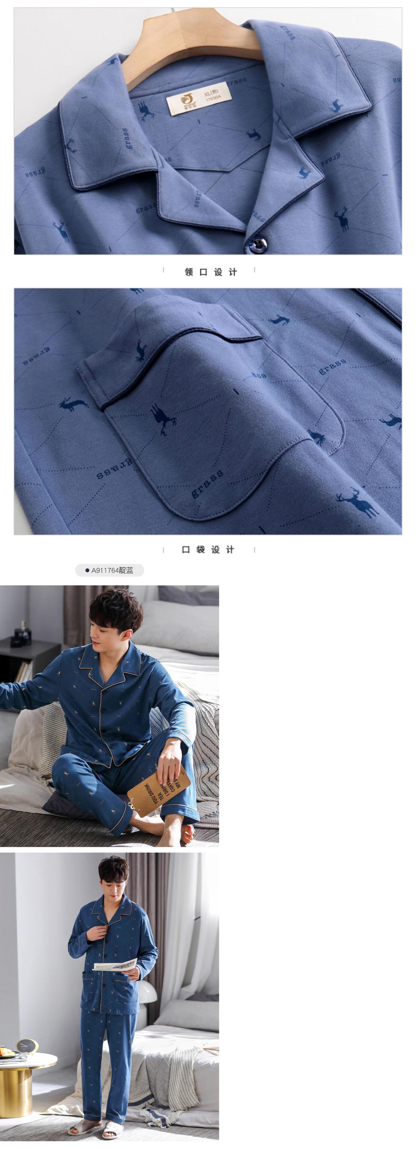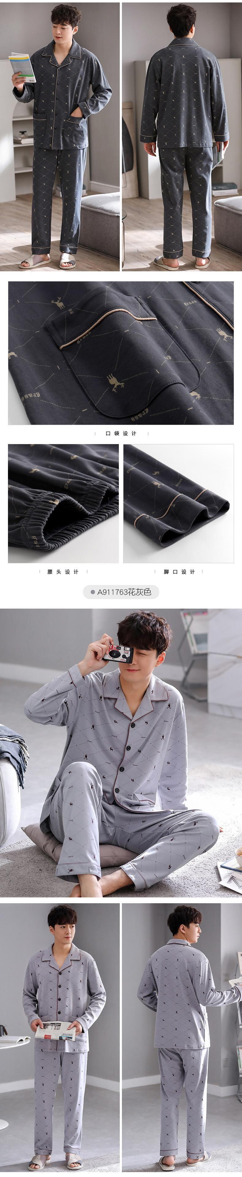 Carrefineパジャマメンズ春秋モデル秋コットン長袖家庭服メンズコットン四季大サイズスーツ jial19723348975