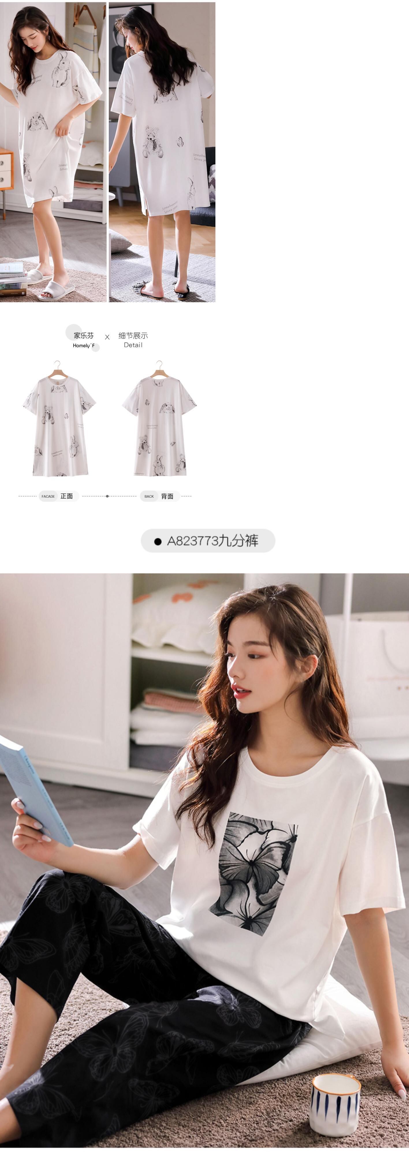 ネグリジェパジャマ夏夏薄手の綿半袖綿の家庭用品長いかわいいルーズプラスサイズ jial76125729420