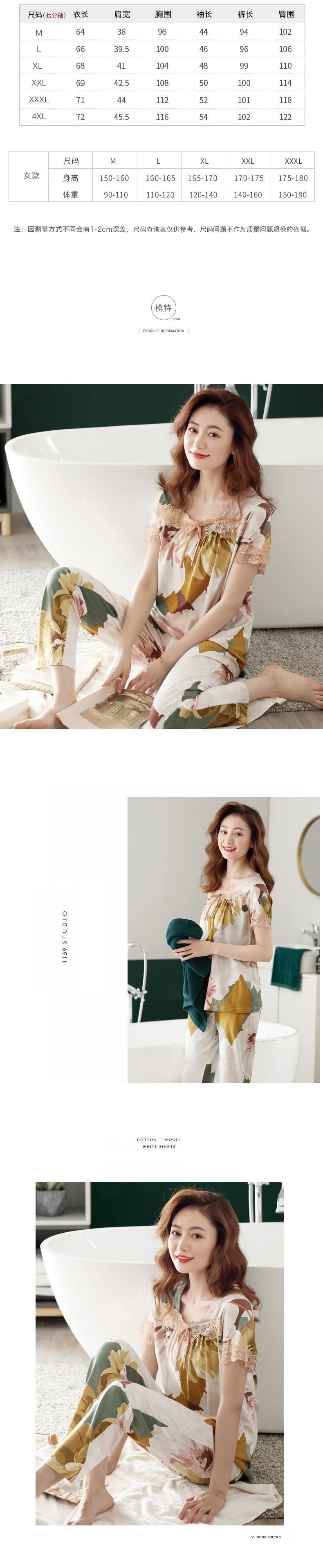 パジャマサマーモーダル半袖パンツホームウェアサマーシンママ中年ルーズラージサイズスーツ jial65937313632