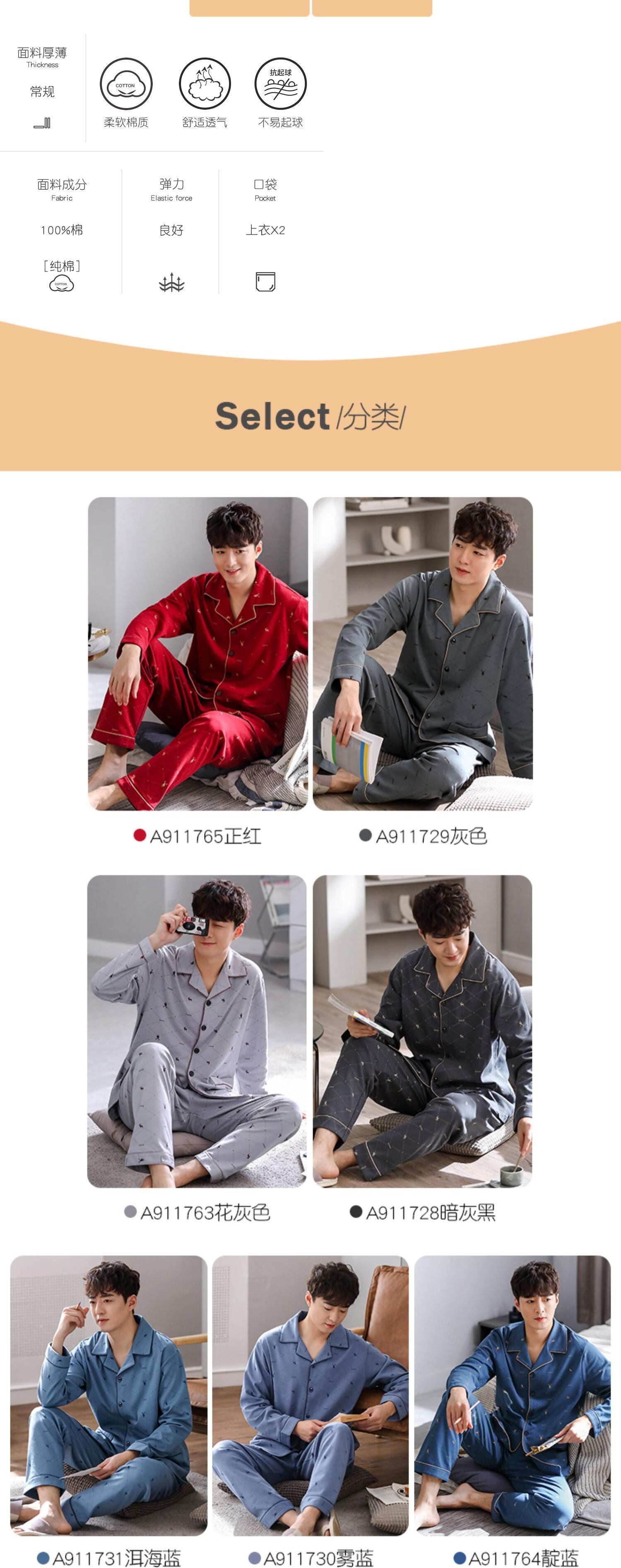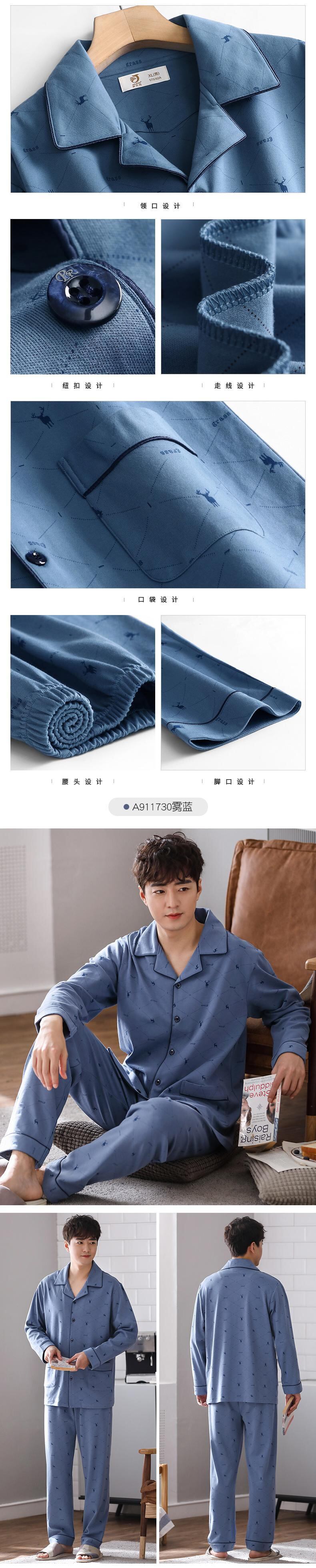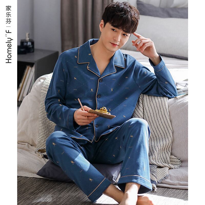 Carrefineパジャマメンズ春秋モデル秋コットン長袖家庭服メンズコットン四季大サイズスーツ jial66069784278