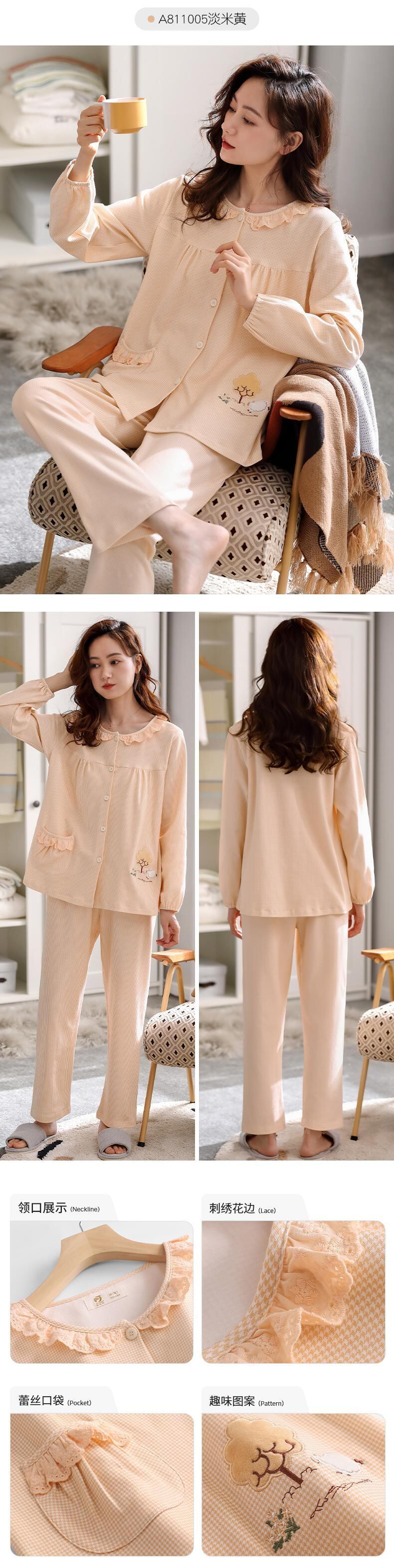 2021年の新しいパジャマレディース春と秋のモデル秋の綿長袖家庭服綿春と夏の薄いスーツ jial80362043141