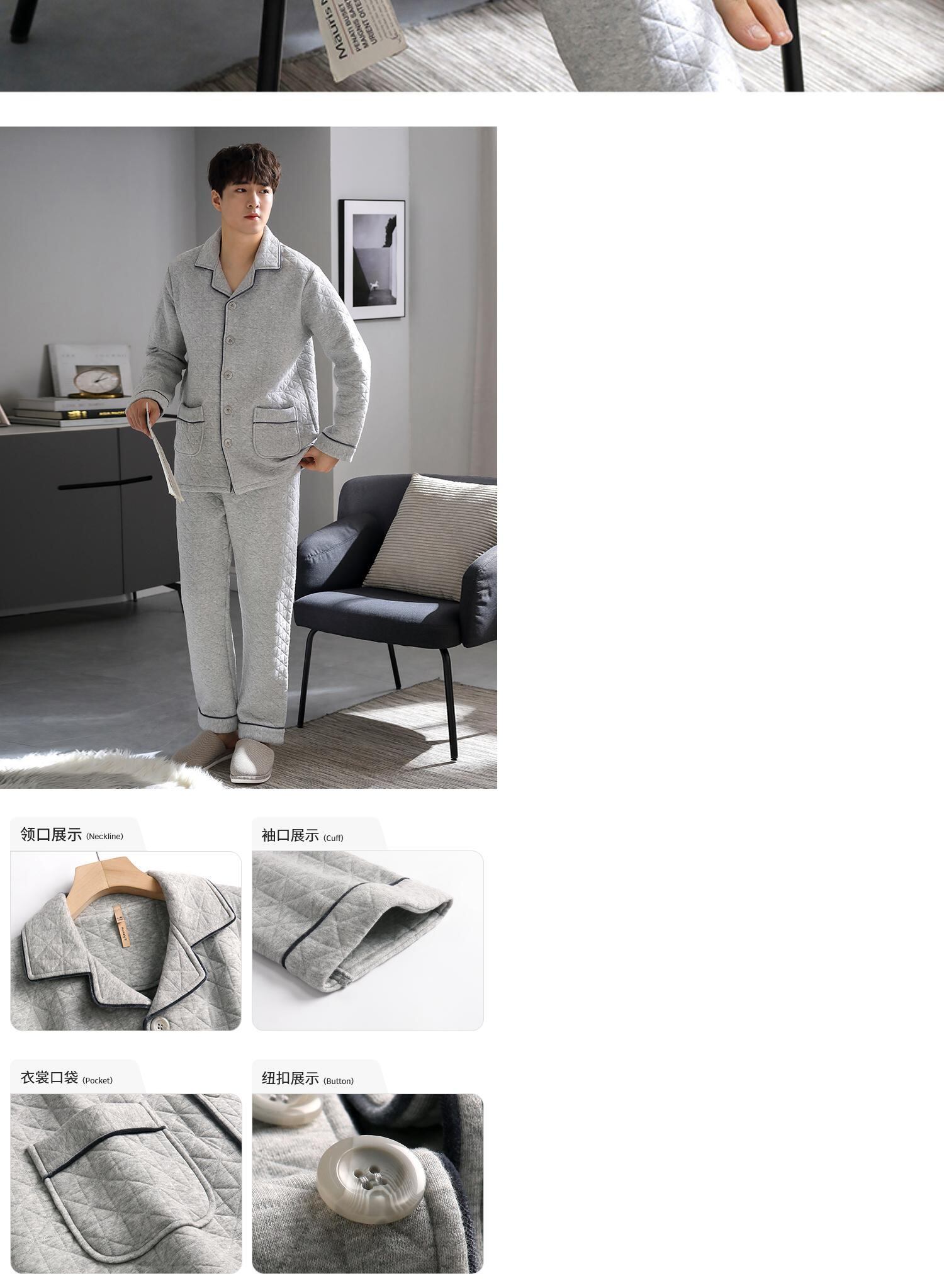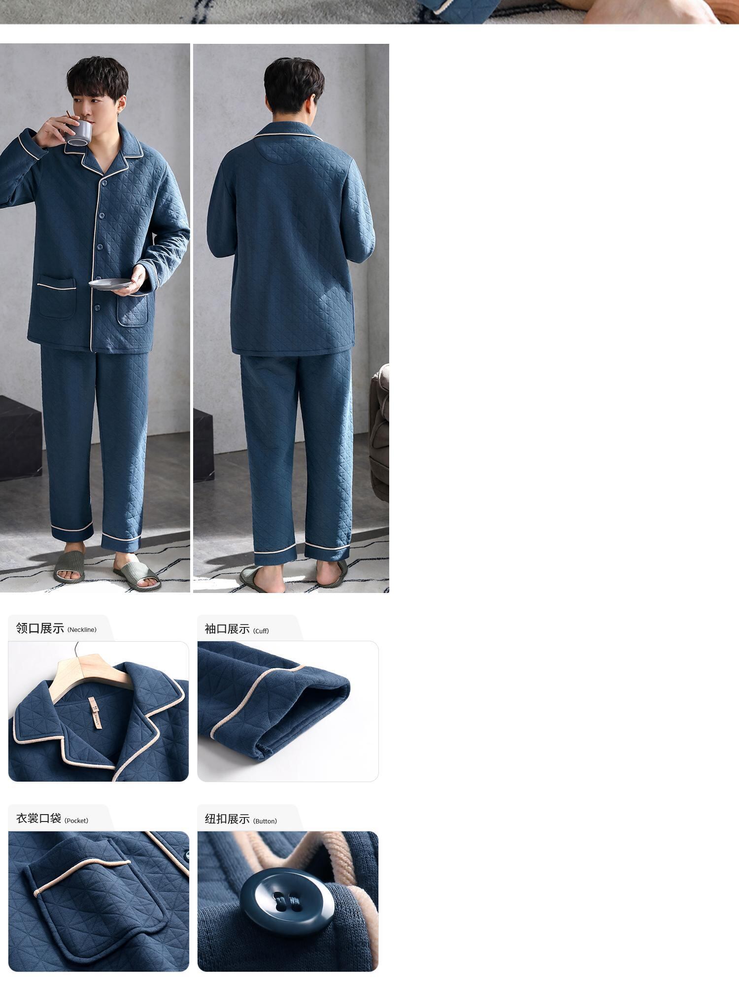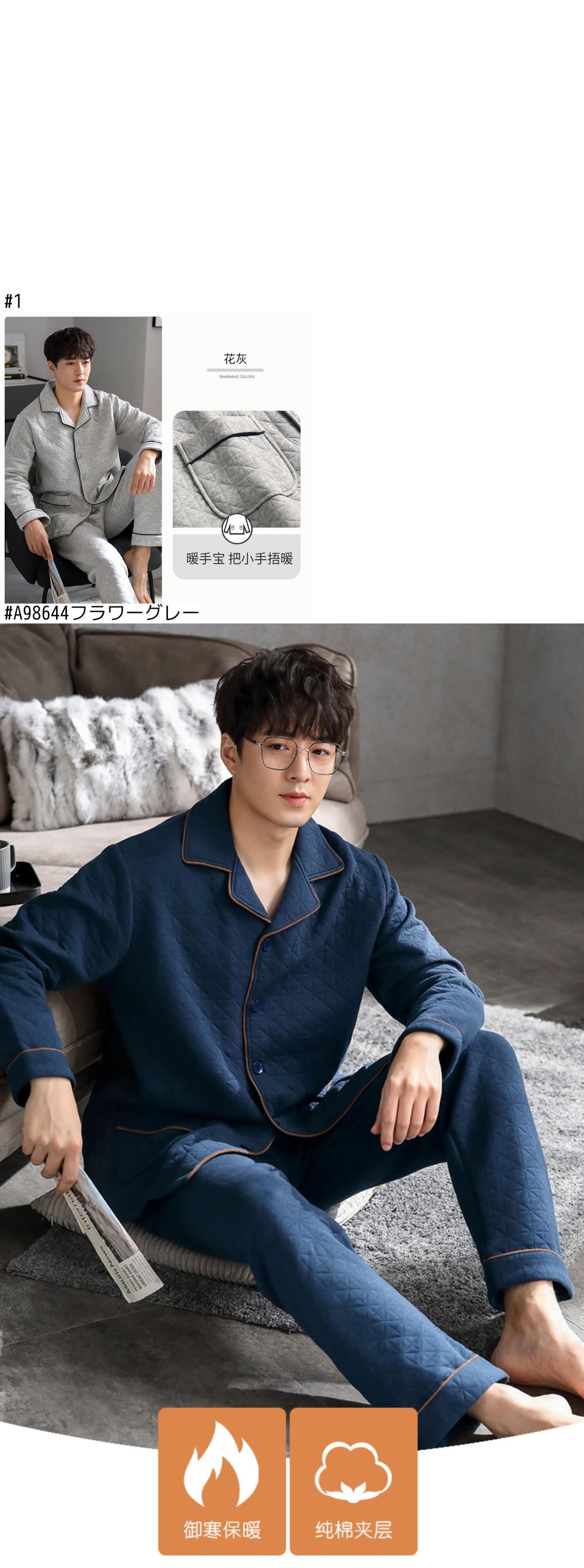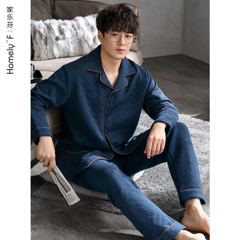 パジャマメンズ春秋モデル秋厚手コットンホームウェア秋冬モデル冬薄手キルティングコットンエアコットン中間層 jial12171588802