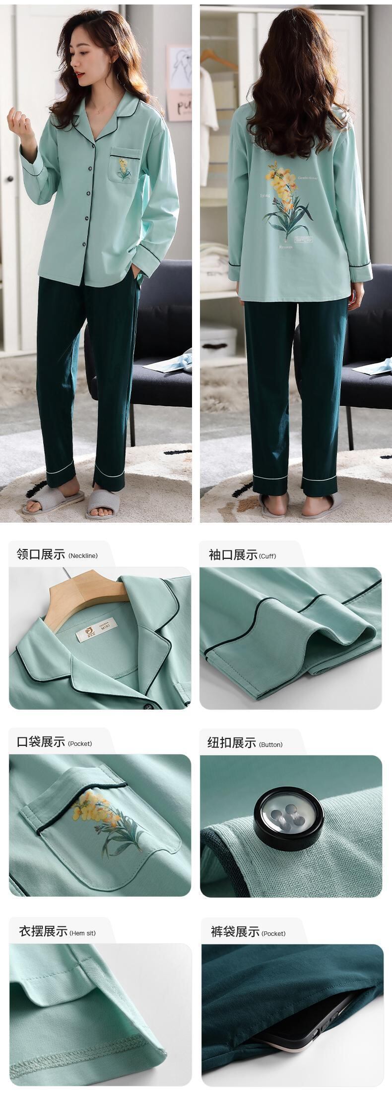 パジャマ春秋秋コットン長袖ホームウェアコットン春夏薄片ラージサイズママツーピーススーツ jial85691209931
