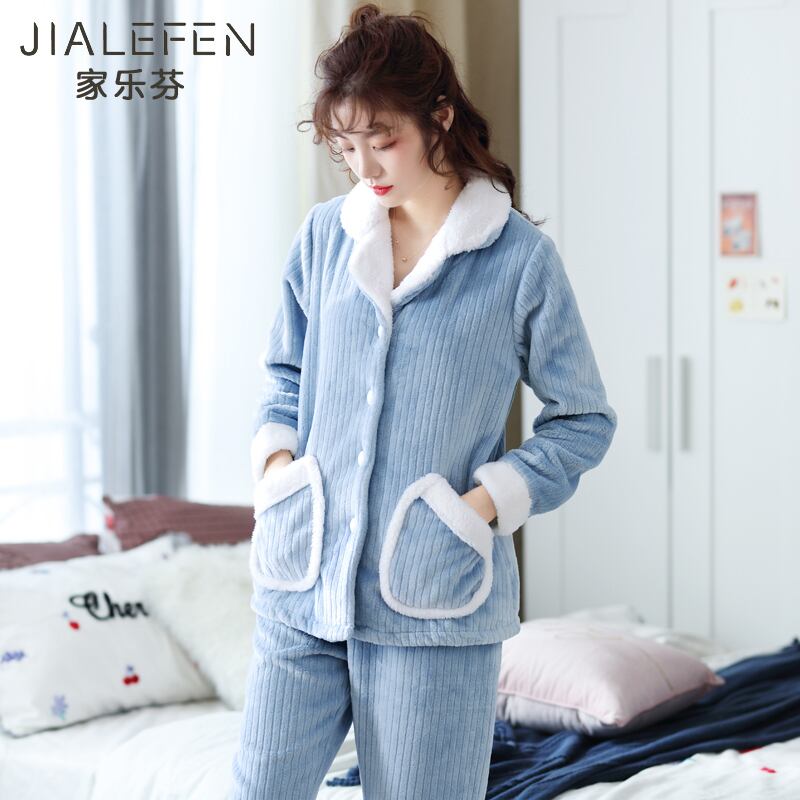 パジャマ秋冬コーラルフリース厚手ウォームフランネルホームウェアスーツ jial1229935261