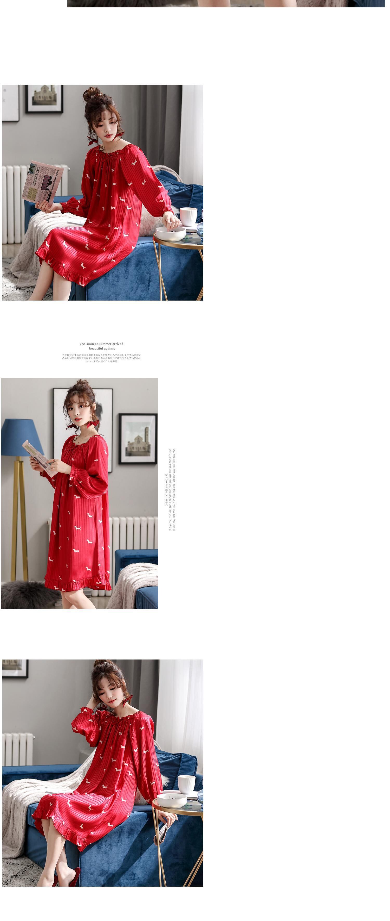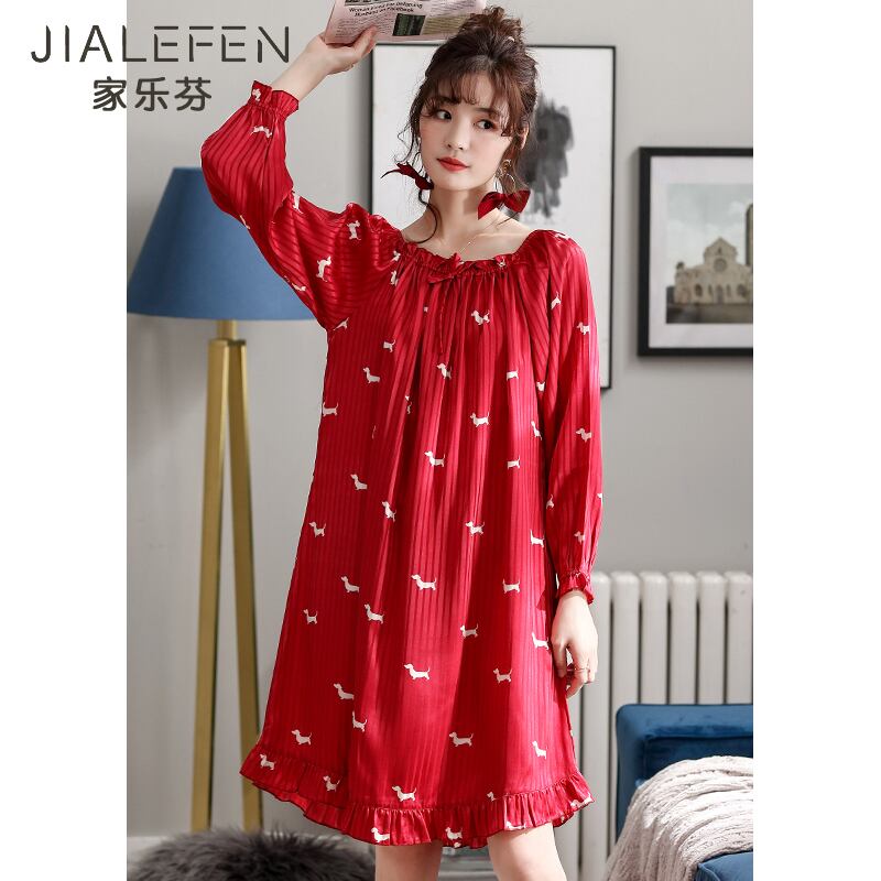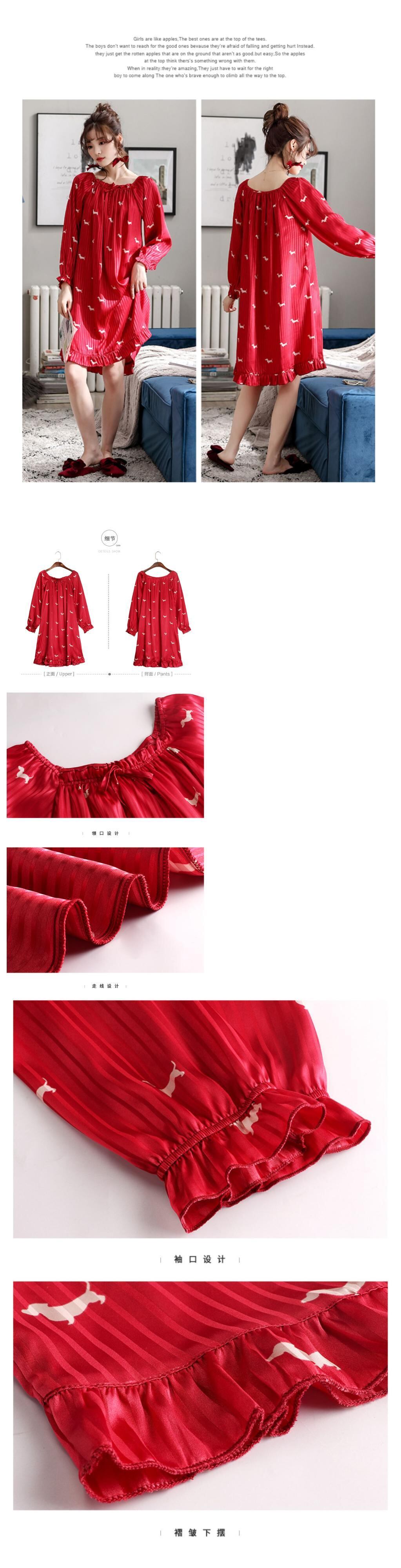 ネグリジェレディースパジャマ春秋薄手夏夏長袖アイスシルクシミュレーションシルク出生年ビッグレッドバージョン jial56772071935