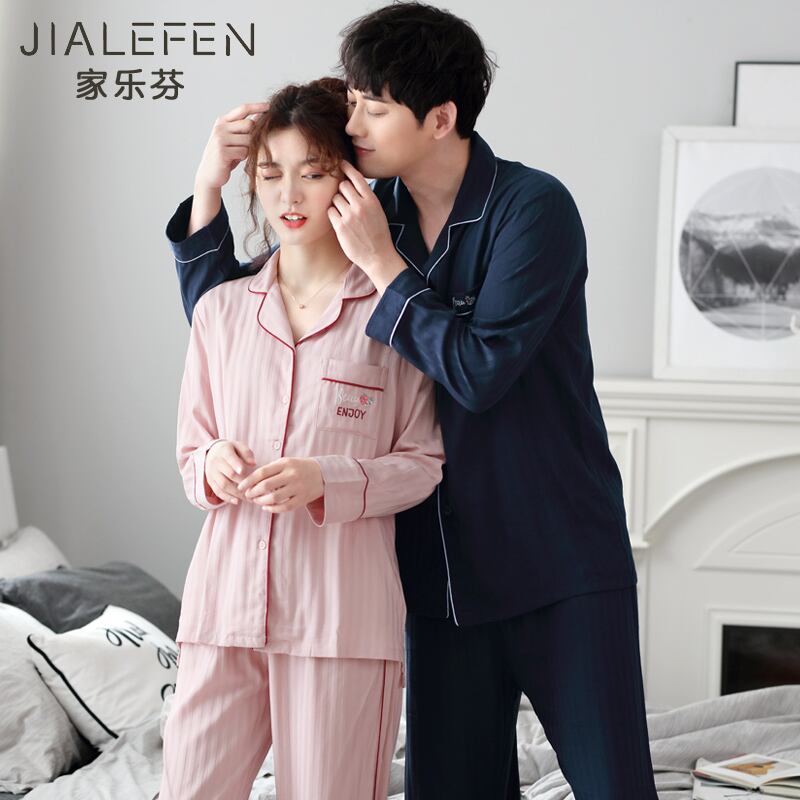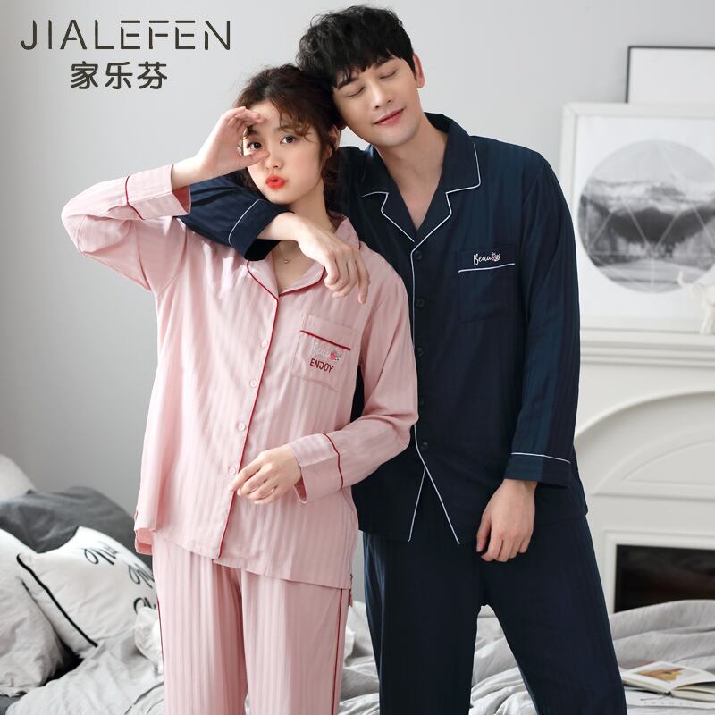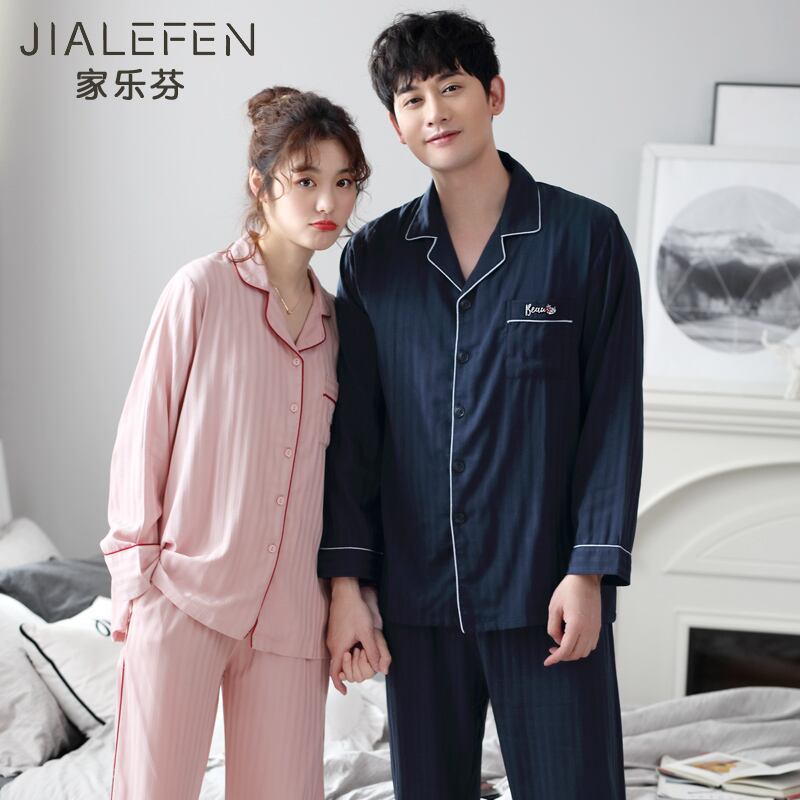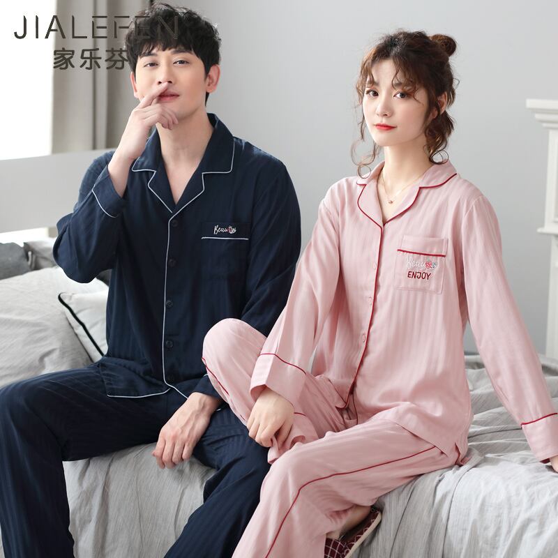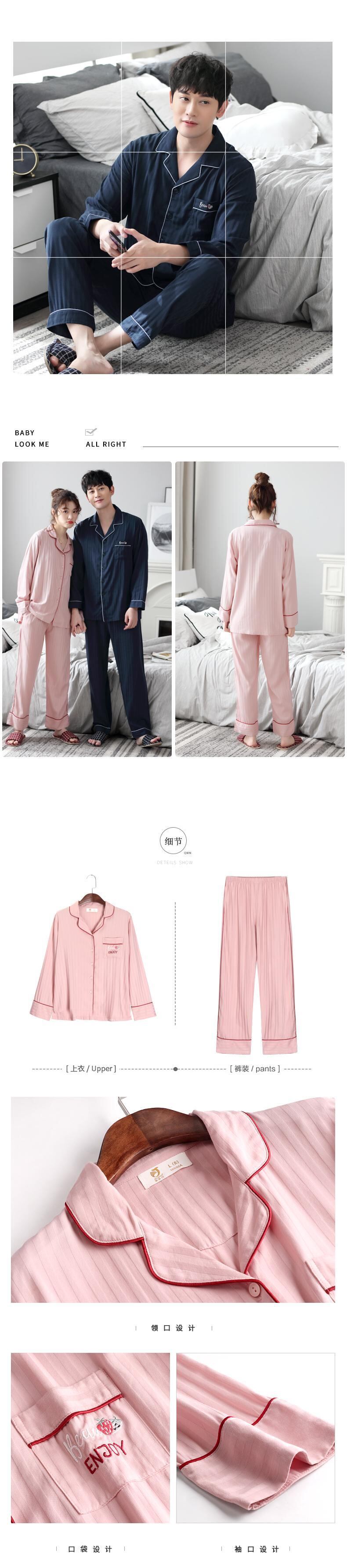 ウーブンコットンガーゼカップルパジャマメンズ春秋モデル秋コットン長袖家庭服レディースコットン夏薄スーツ jial57763982743
