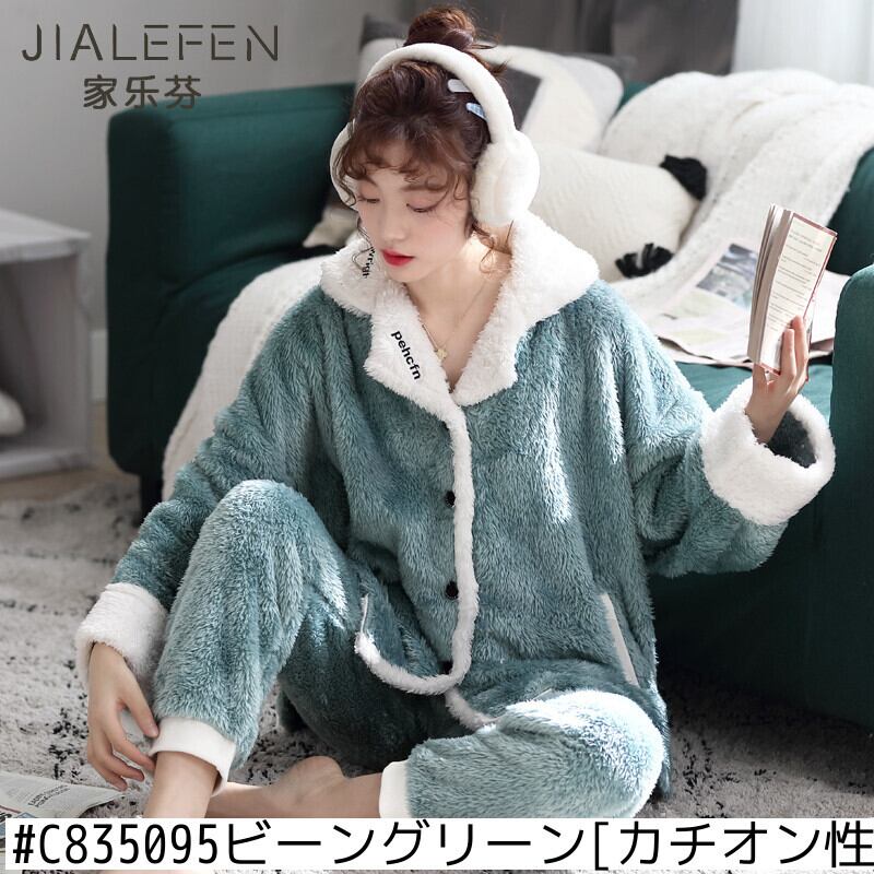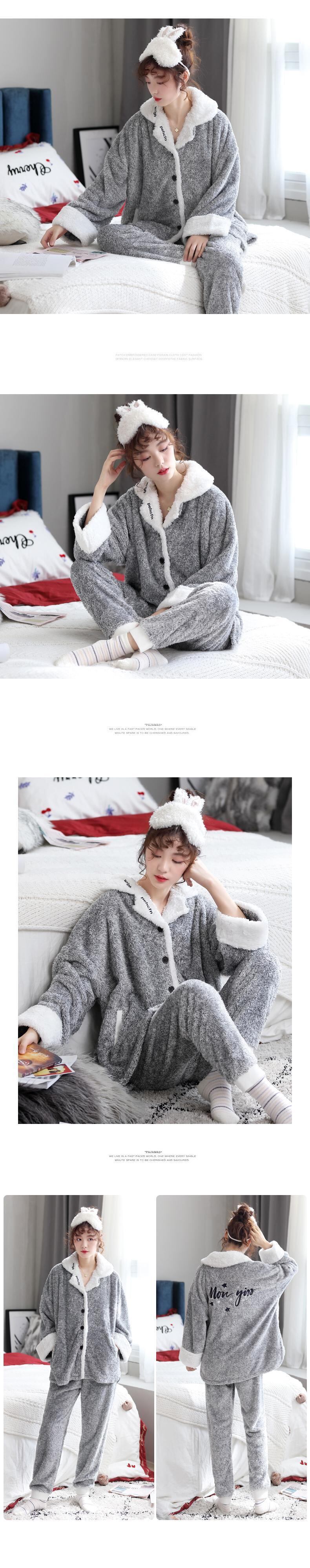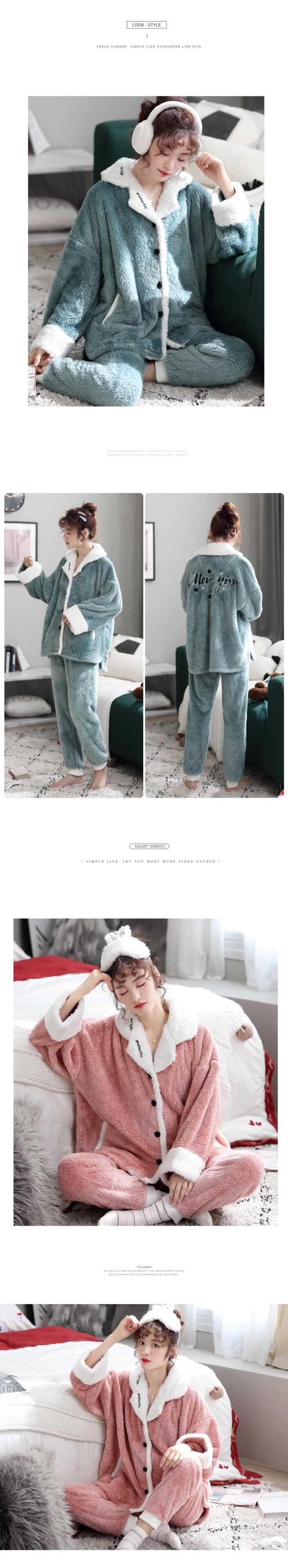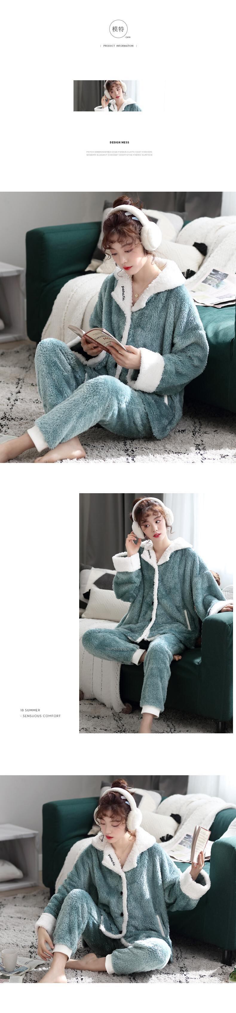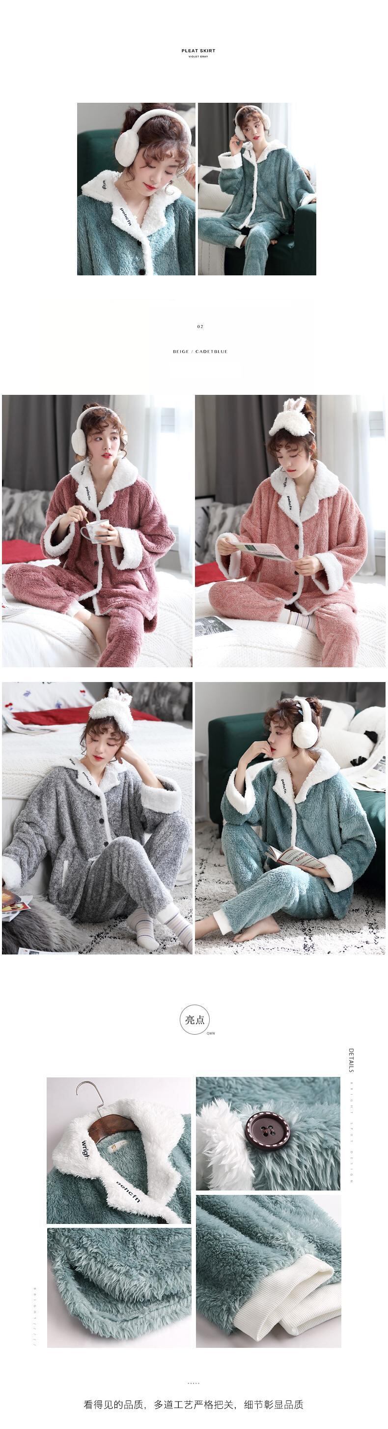 毛皮のようなパジャマ女性の秋と冬のサンゴのフリースが厚くなり、ベルベットの暖かい家庭服フランネルの冬のスーツ jial22986260186