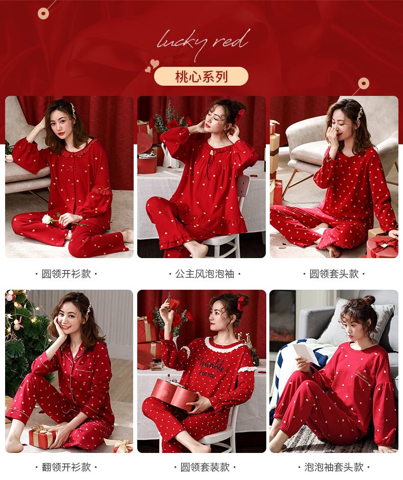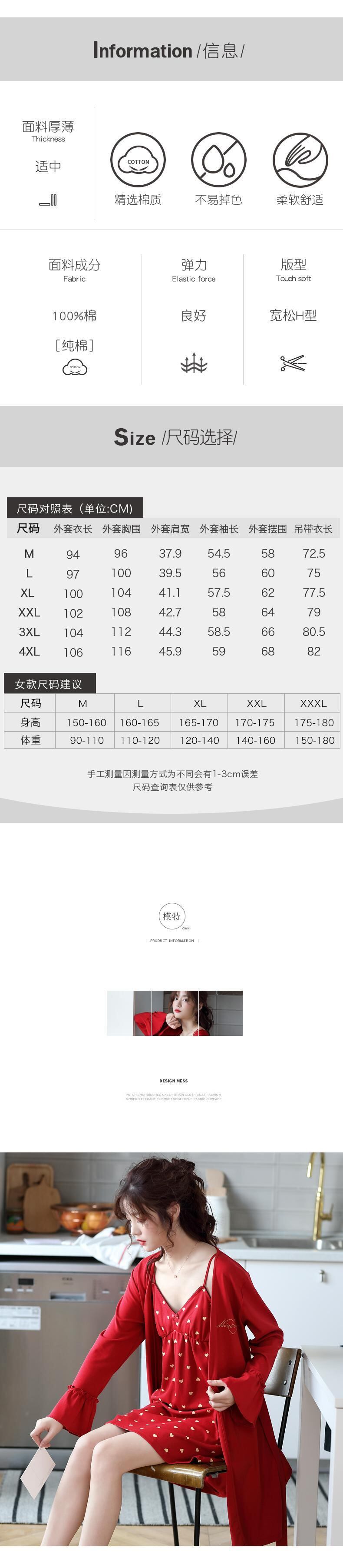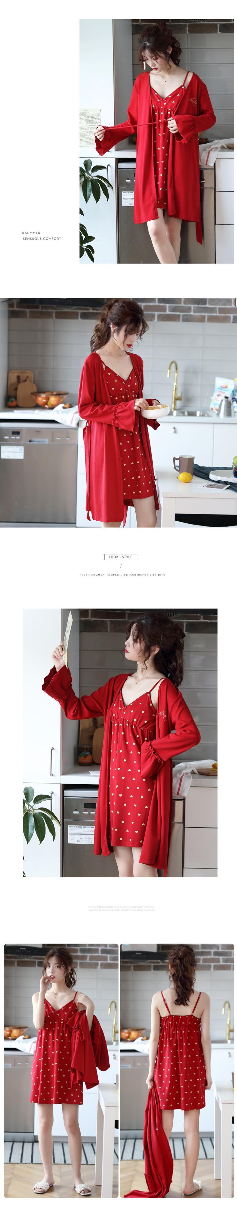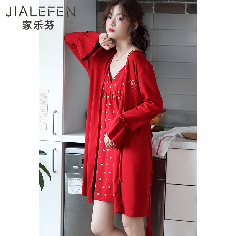 春秋パジャマレディースコットン長袖サスペンダーネグリジェセクシーサスペンダーネグリジェ大きな赤い夏薄いツーピーススーツ jial31315078156