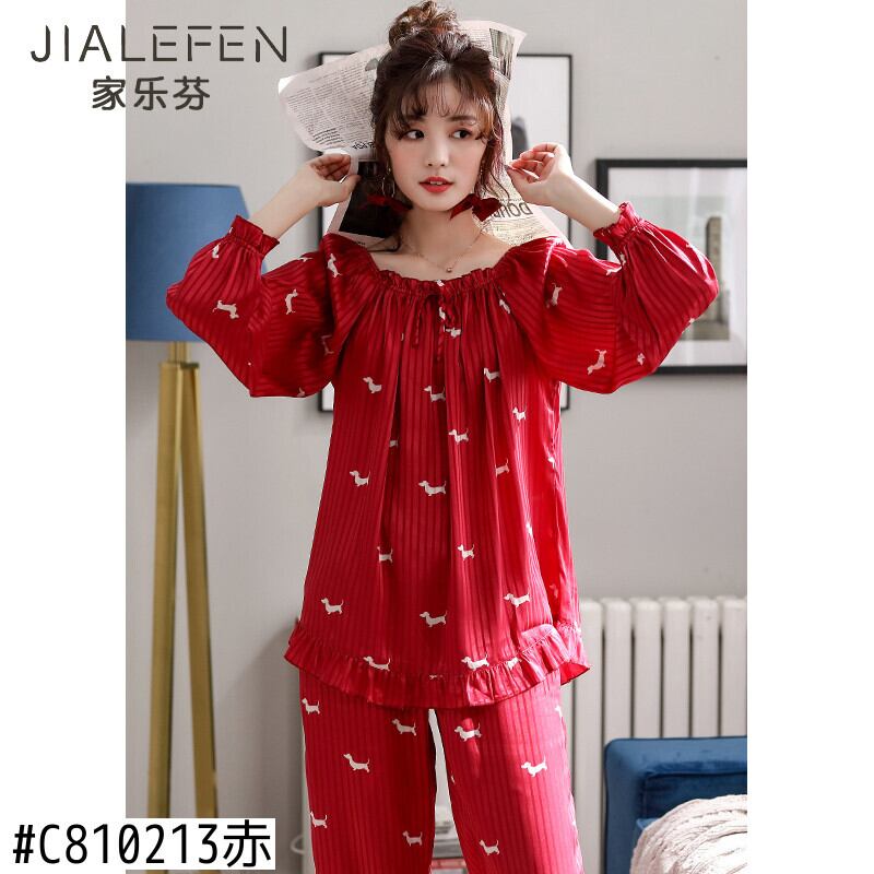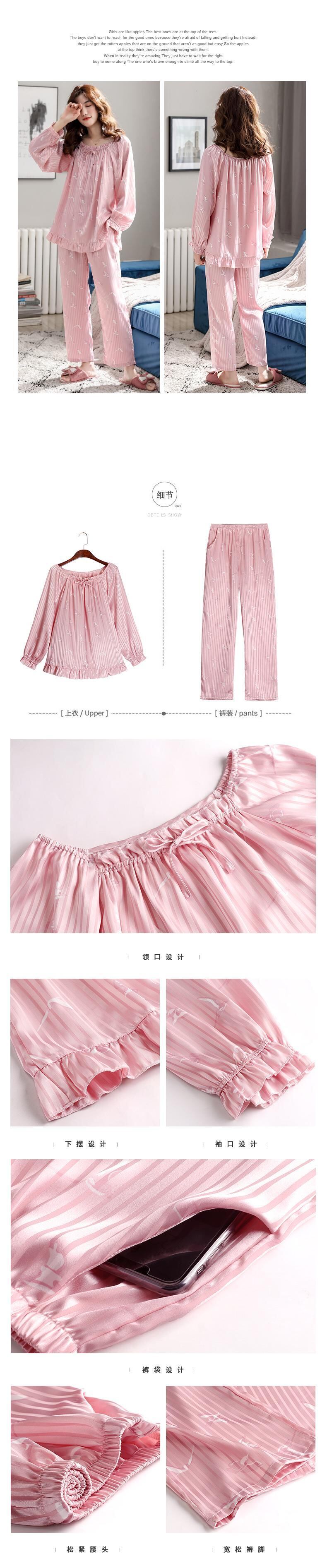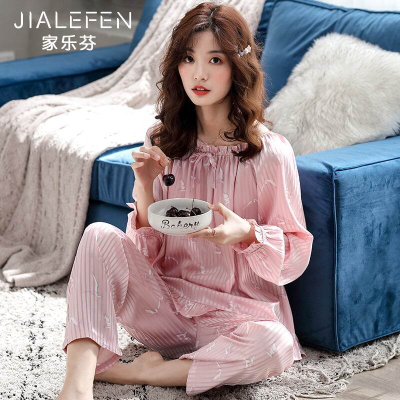 パジャマレディース春秋薄手夏アイスシルク長袖シミュレーションシルク夏かわいいプルオーバーバージョンツーピーススーツ jial29188154712
