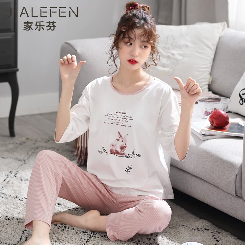パジャマ春と秋薄手の長袖夏のプルオーバーコットンホームウェアコットンは外出することができますレジャーツーピーススーツ jial72847250179