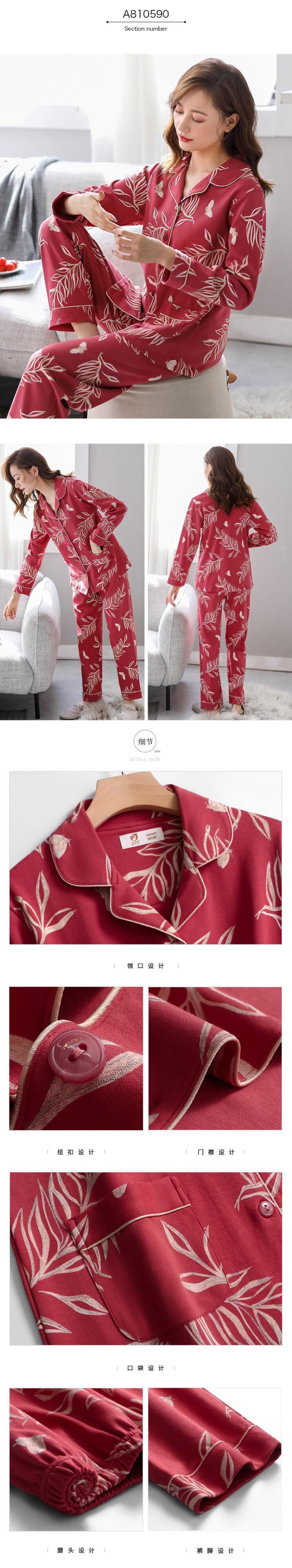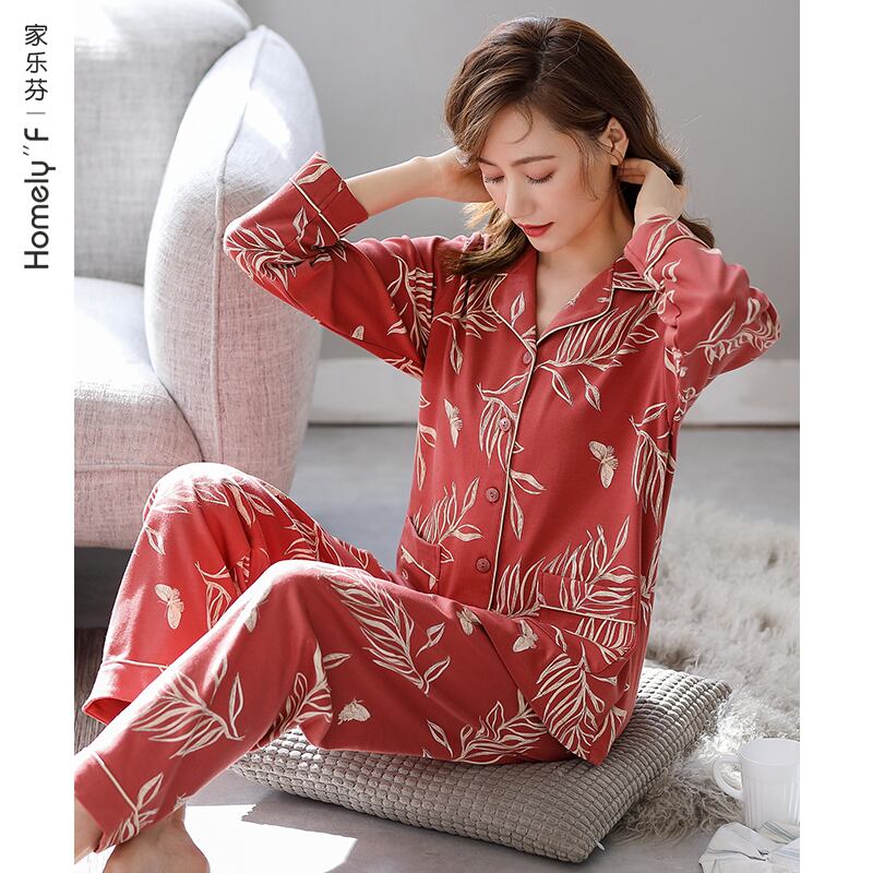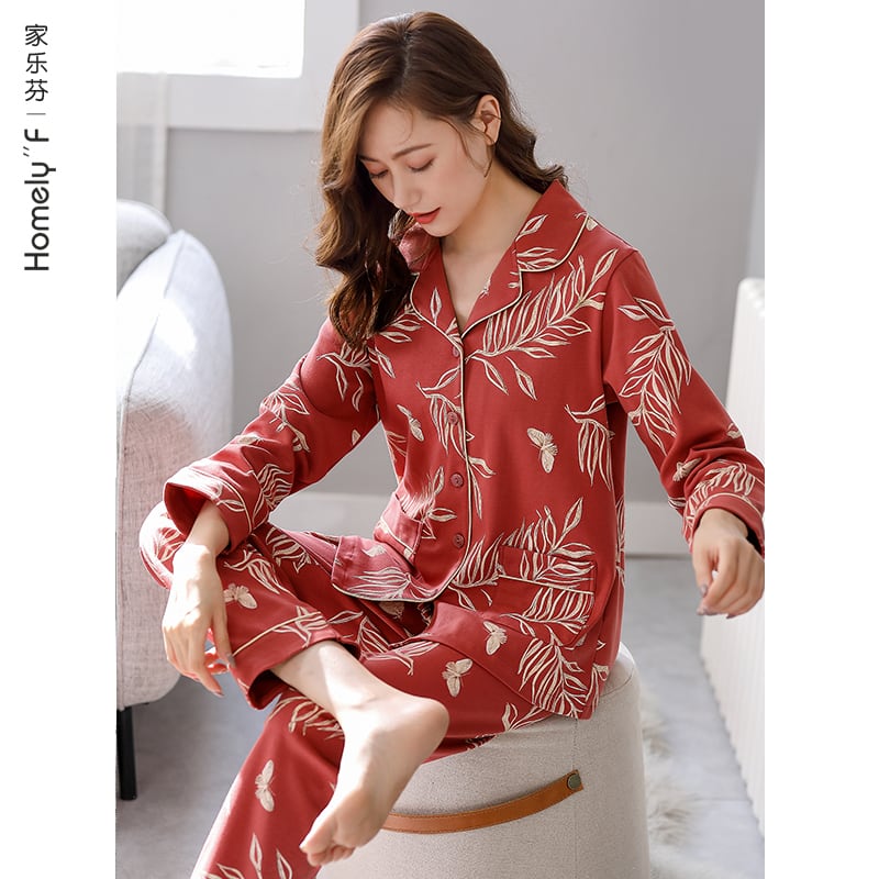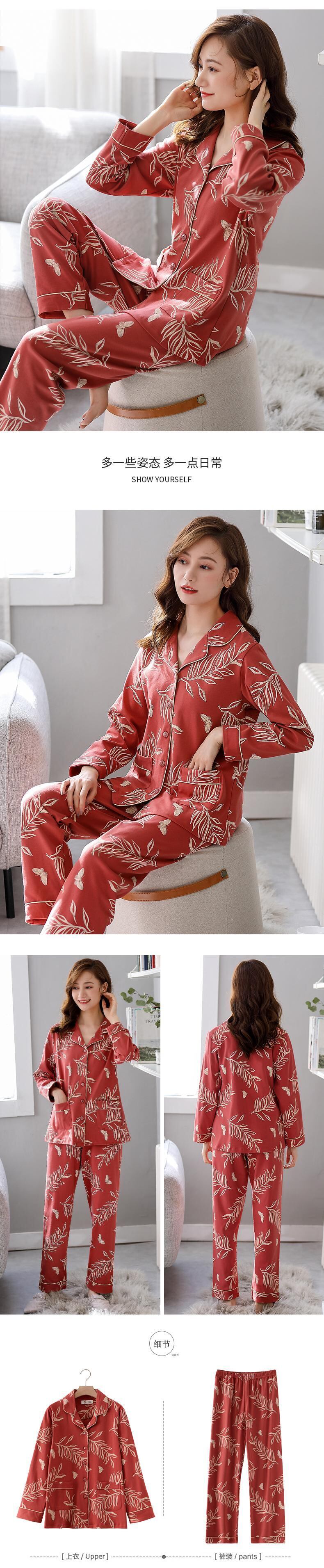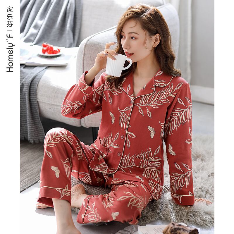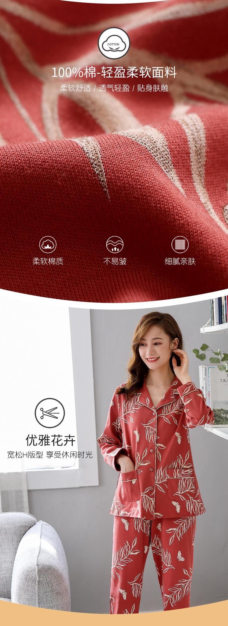 パジャマ春秋秋コットン長袖ホームウェアコットン秋冬薄手中年マザースーツ jial95297859777