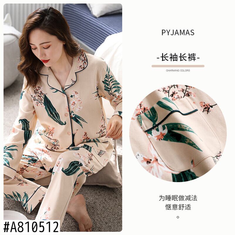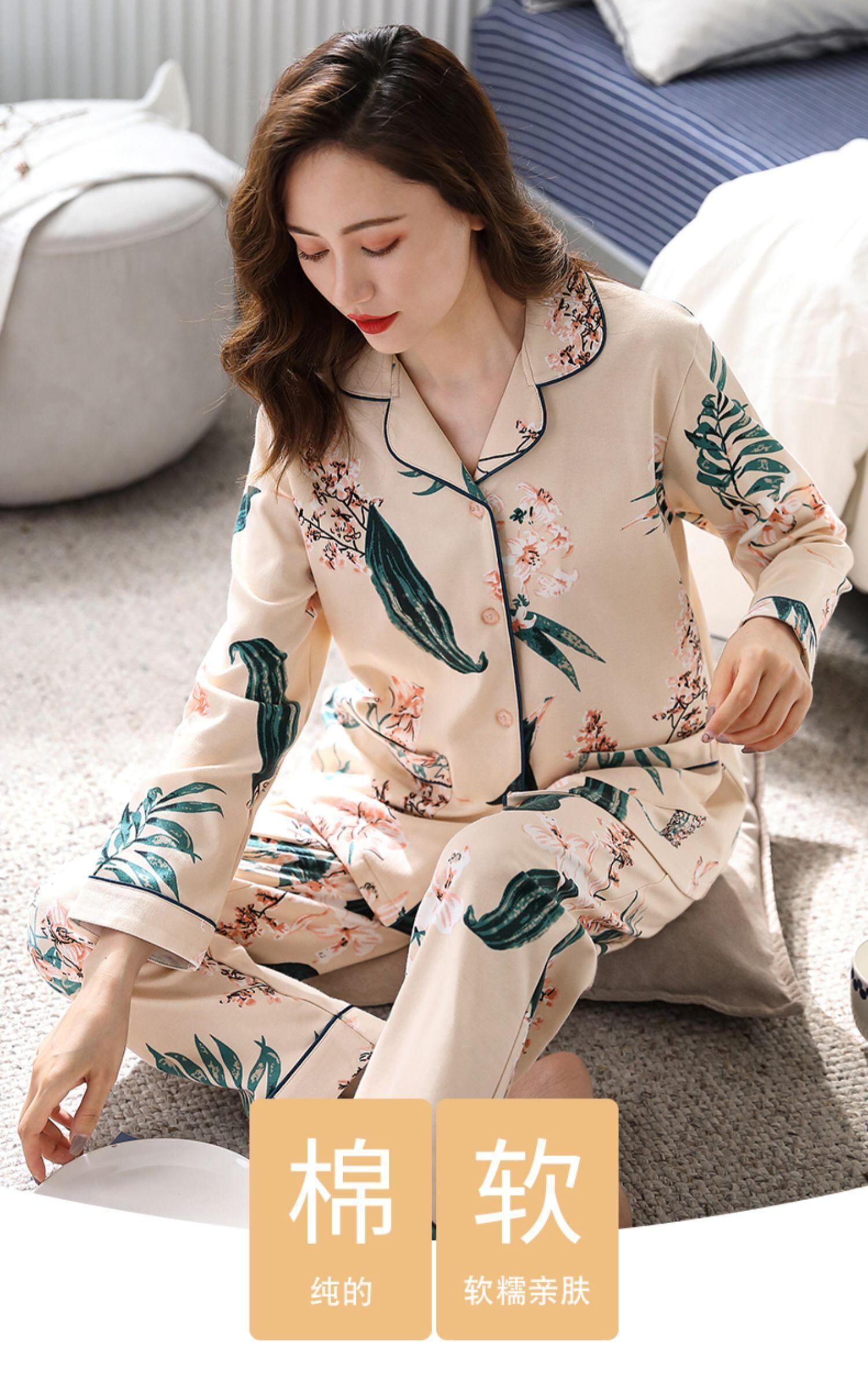 パジャマ春と秋秋と秋の服綿長袖ホームウェア綿秋と冬の薄いセクション中年のお母さんのスーツ jial17258474089