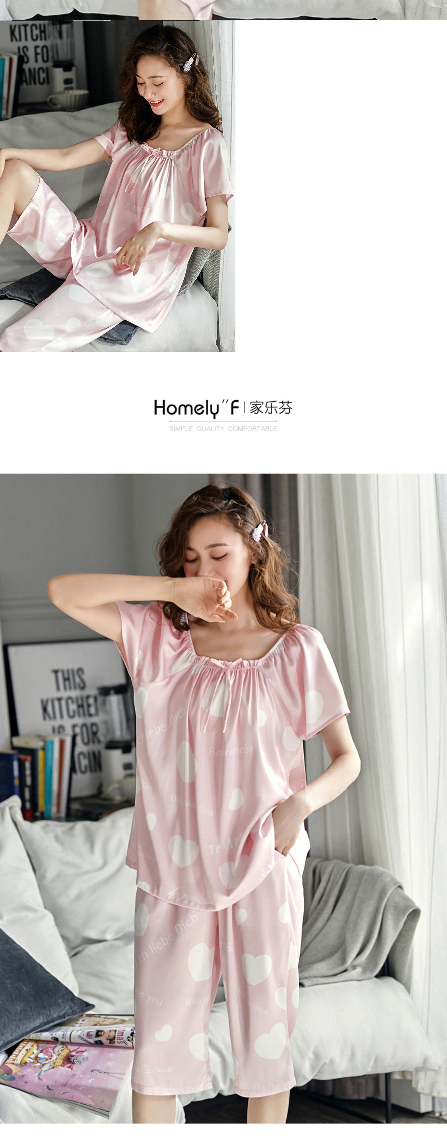 パジャマサマーシルクアイスシルク半袖クロップドパンツホームウェアサマーシンスウィートeseキュートスーツ jial63441362765