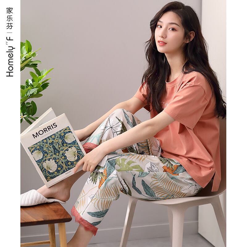 パジャマサマーコットン半袖パンツホームウェアサマーシンコットンルーズアウターウェアラブルスーツ jial67781291792