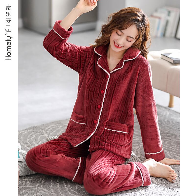 パジャマレディース秋冬サンゴベルベット増粘とベルベット暖かいフランネル家庭服大きな赤い出生年 jial95810329500