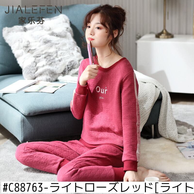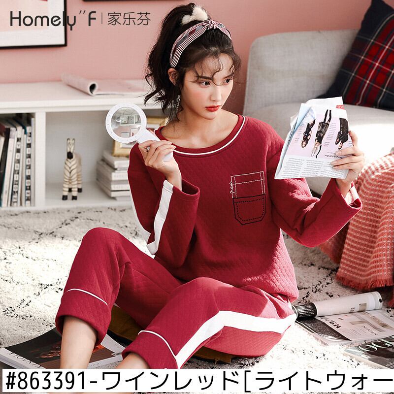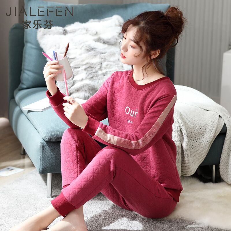 パジャマレディース春秋スタイル秋厚手コットン長袖家庭服秋冬暖かいキルティング薄片カジュアルは外で着ることができます jial61590786810
