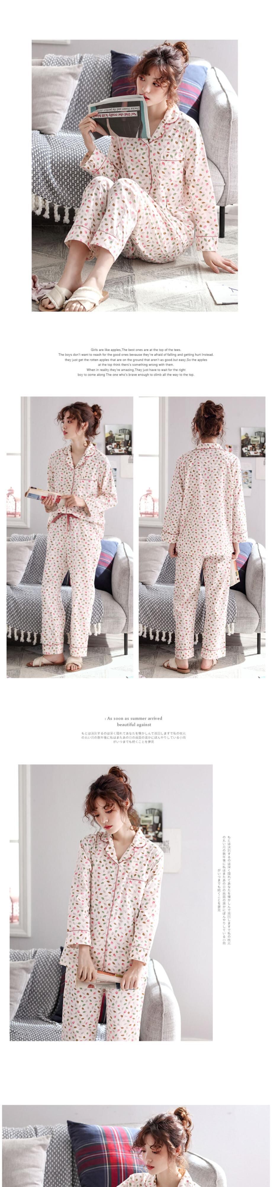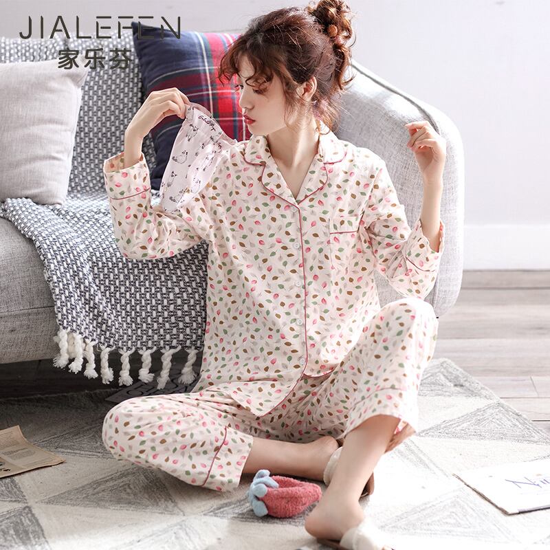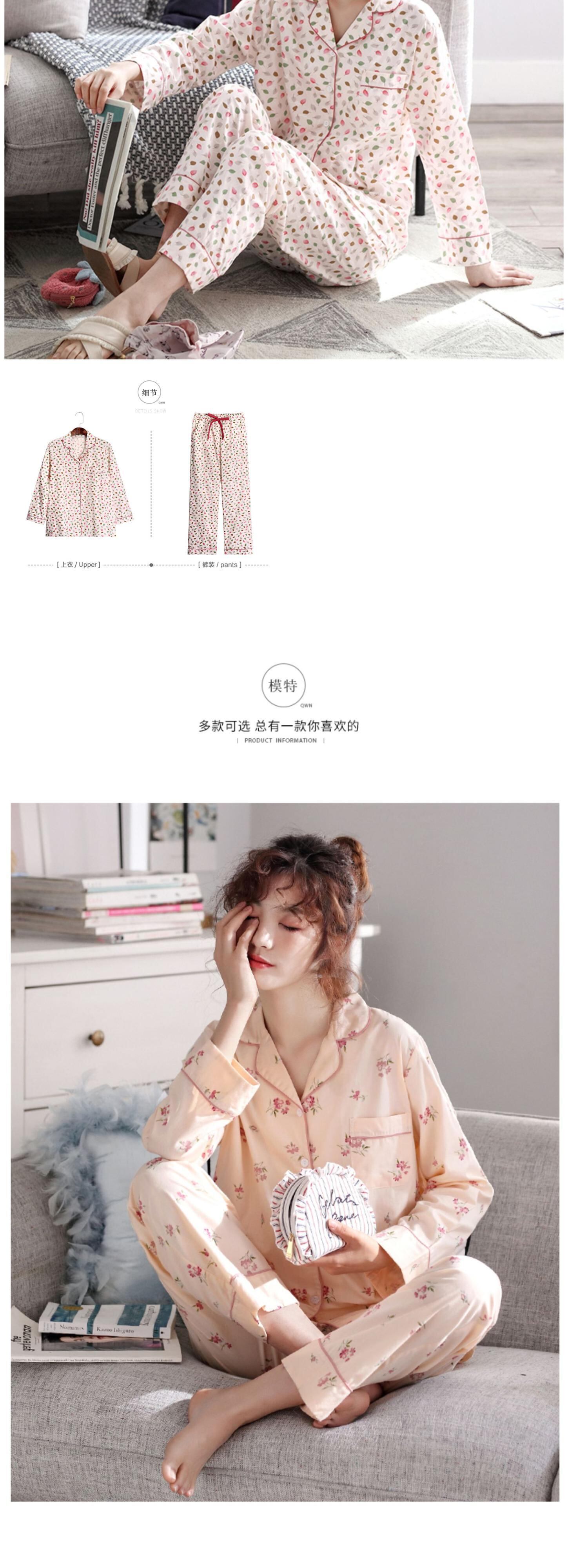 【ウーブンコットン】パジャマ春秋ピュアコットン長袖ホームウェアコットン薄身夏中年ママスーツ jial97570100545
