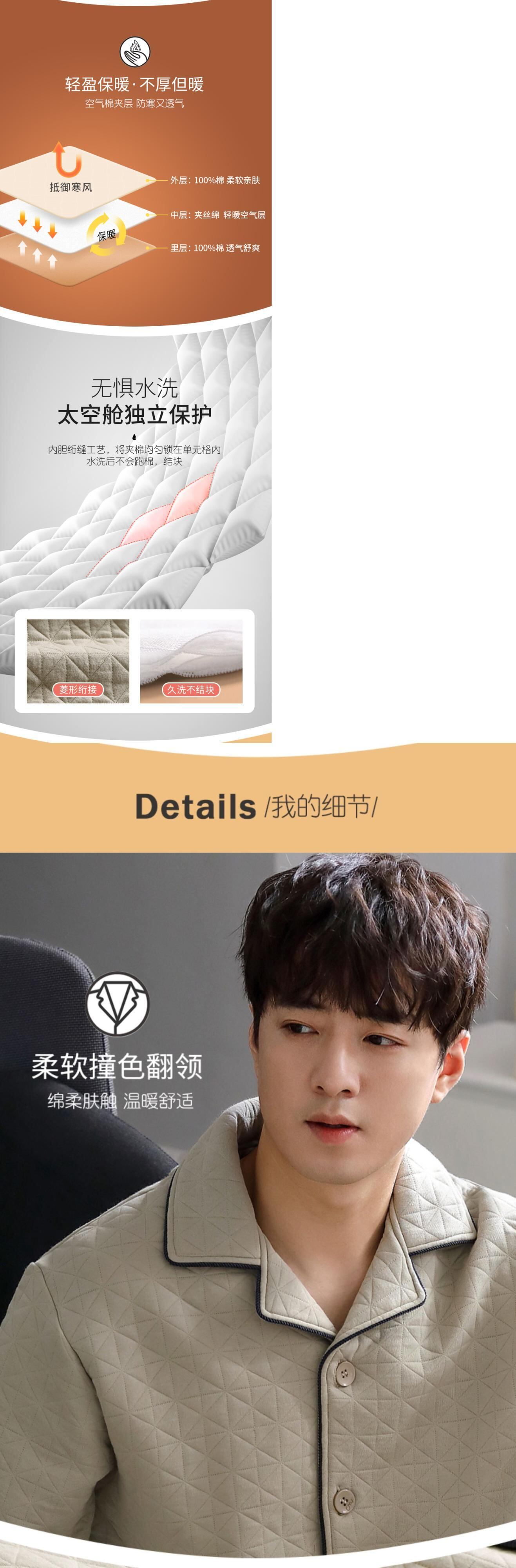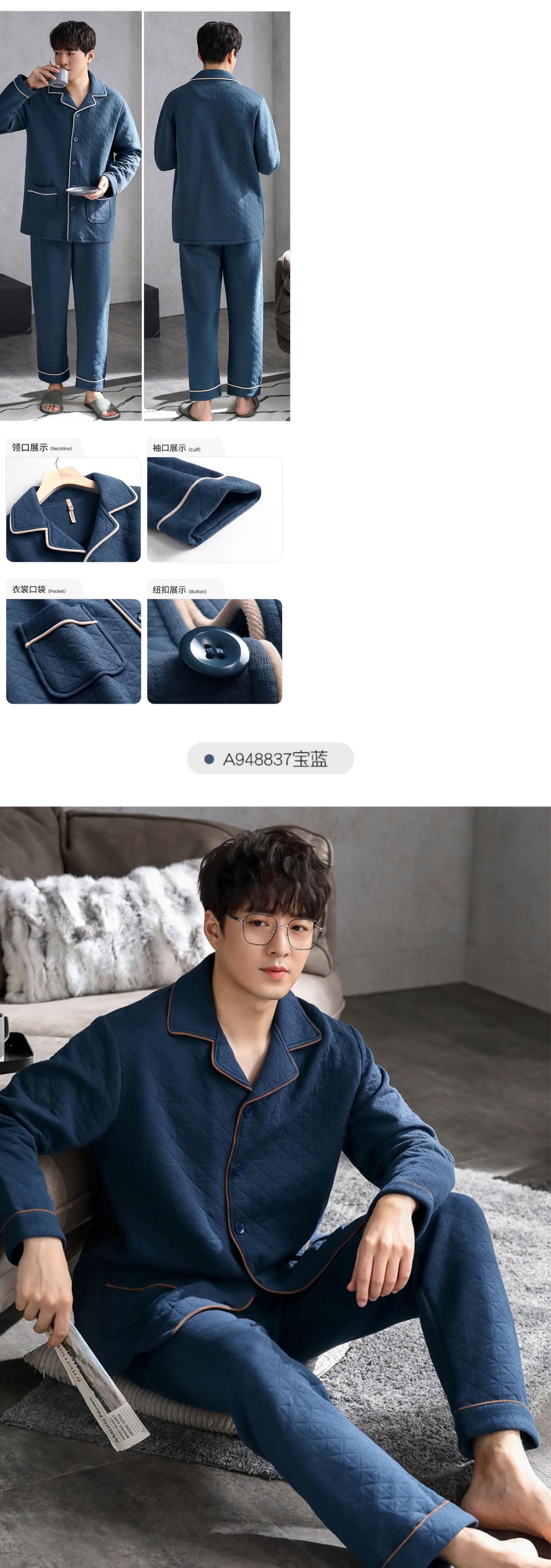パジャマメンズ春秋モデル秋厚手コットンホームウェア秋冬モデル冬薄手キルティングコットンエアコットン中間層 jial24780158494