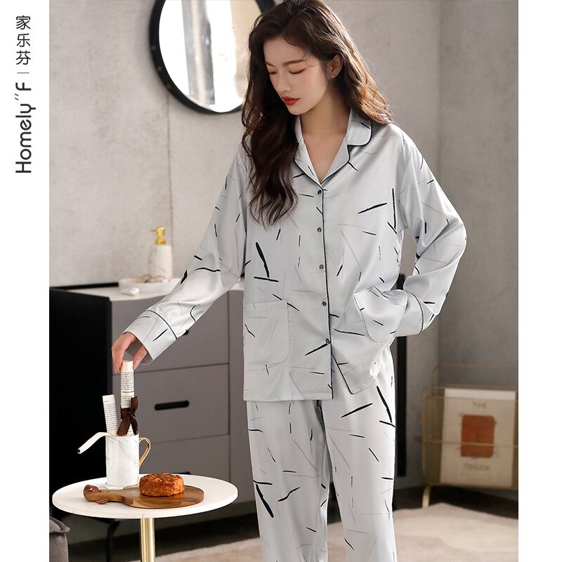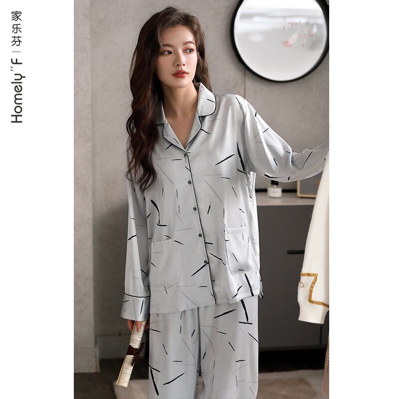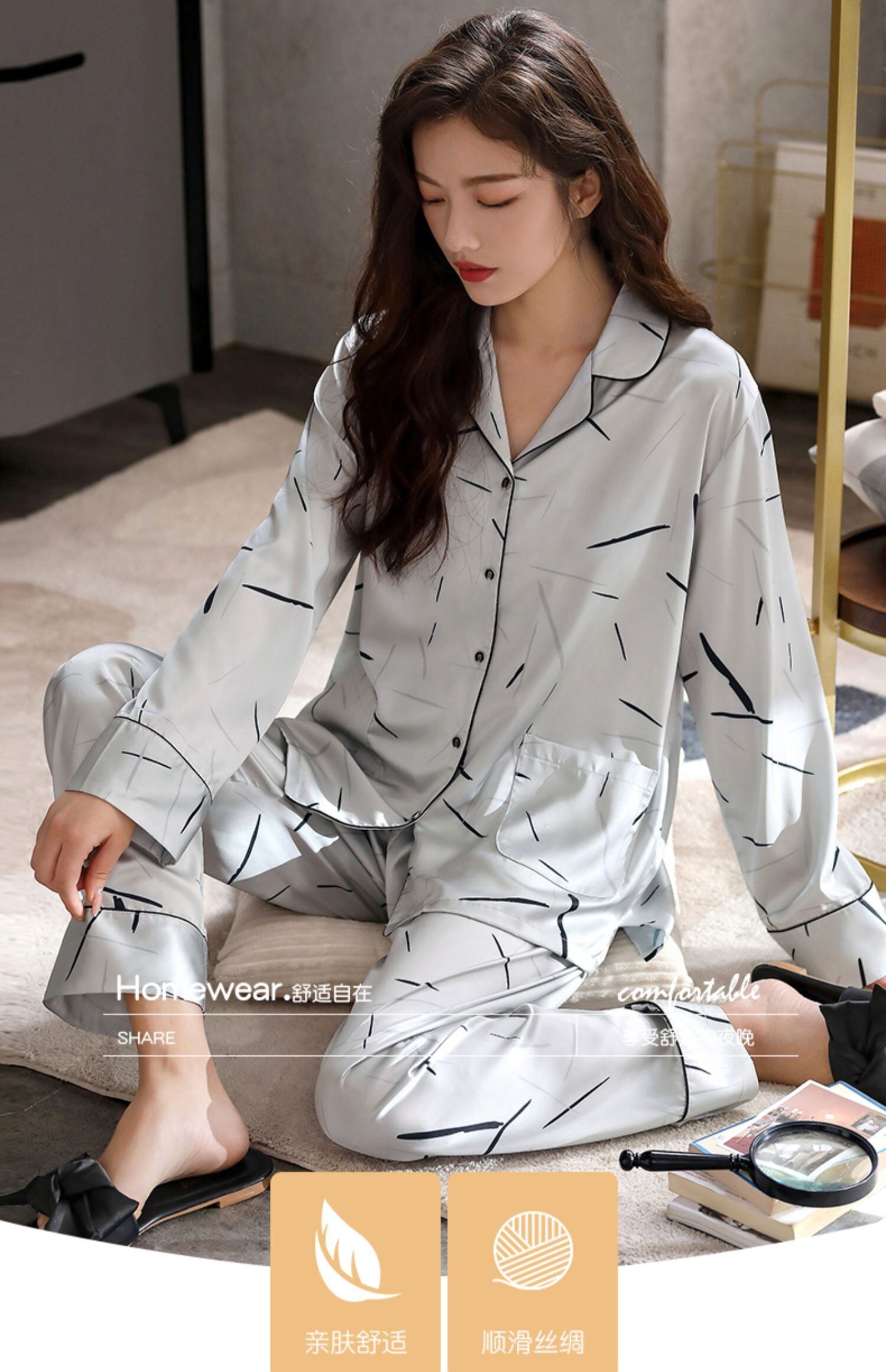 パジャマ春と夏シルクアイスシルク長袖ホームウェア春と秋秋薄いシミュレートされたシルクスーツ jial56179131283