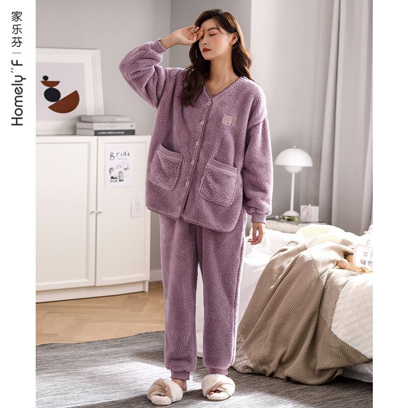 パジャマの女性の秋と冬のモデル冬の肥厚とベルベットのフランネル冬のコーラルフリースの家庭服は、女性のスーツの外で着用することができます jial41402911079