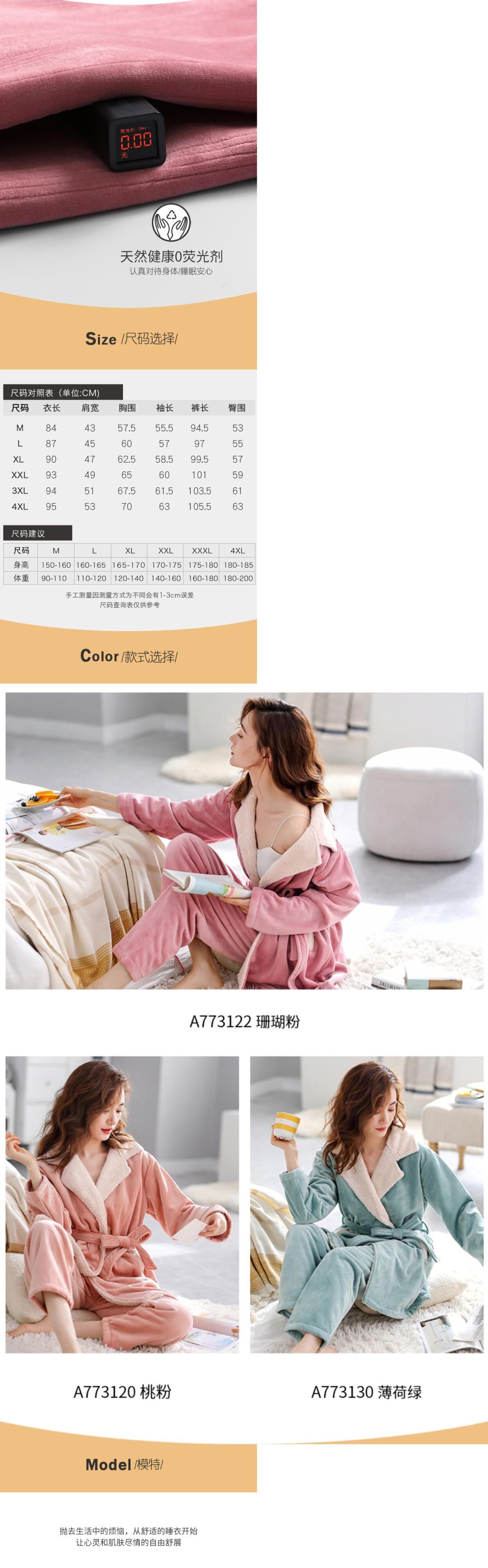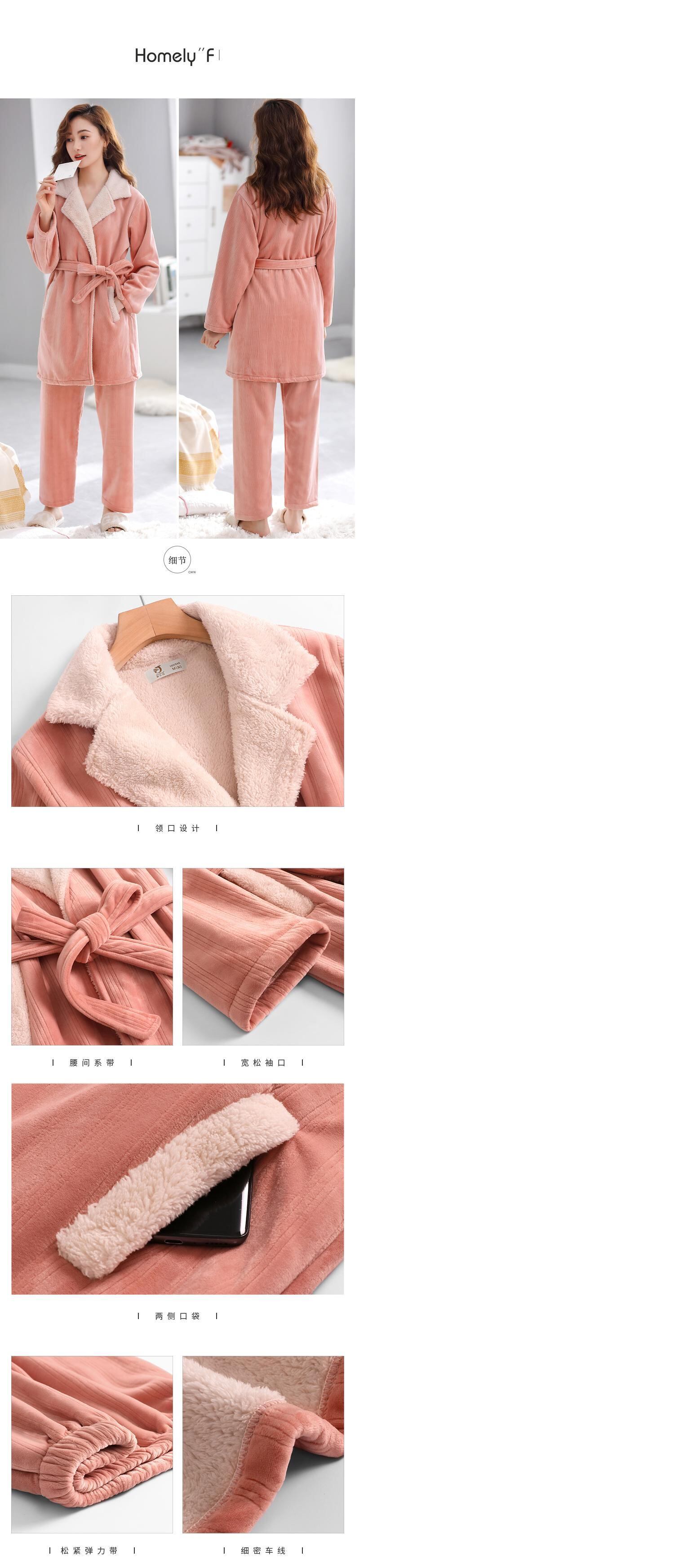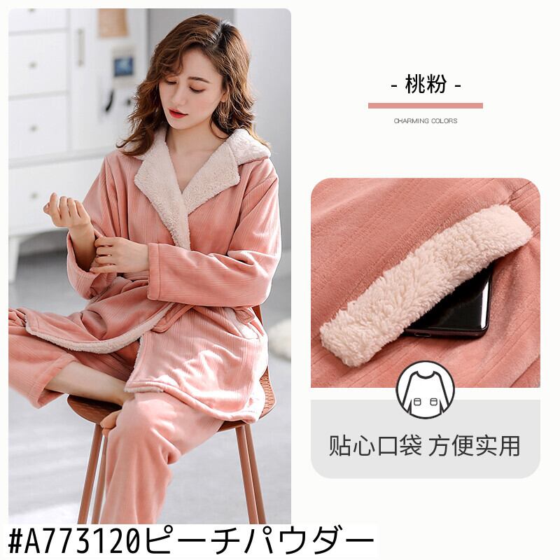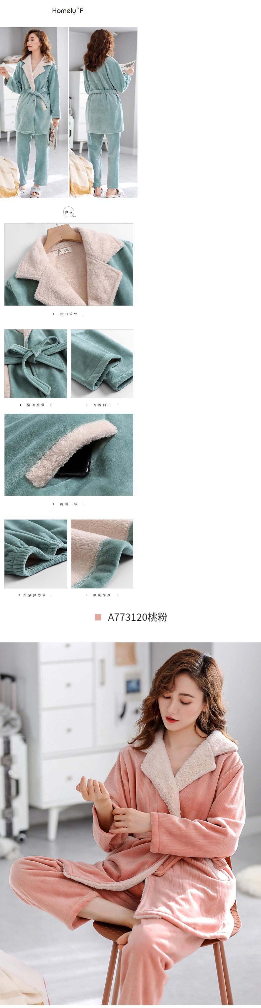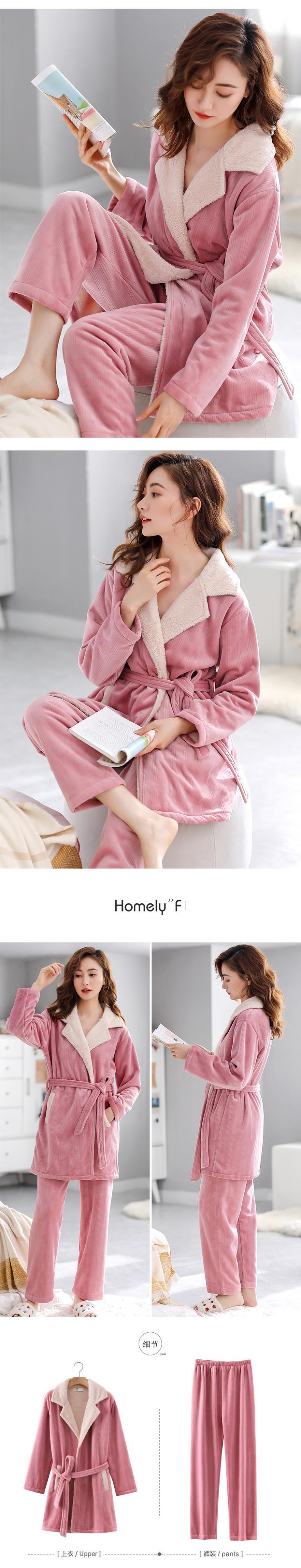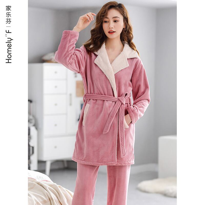 パジャマレディース秋冬コーラルフリース厚手ベルベットウォームコンポジットキルティングフランネルホームサービスナイトガウンセット jial68449975813
