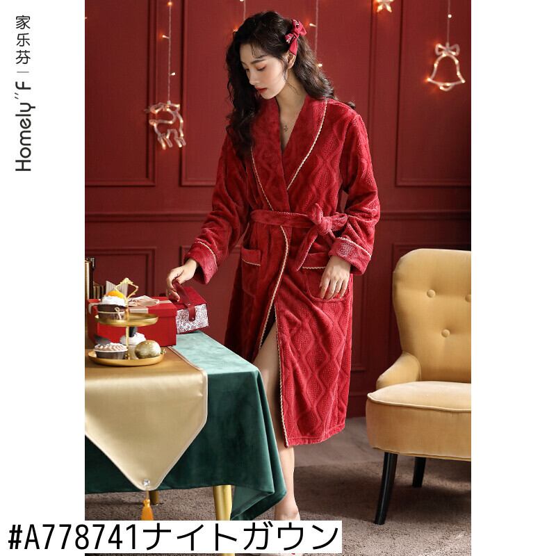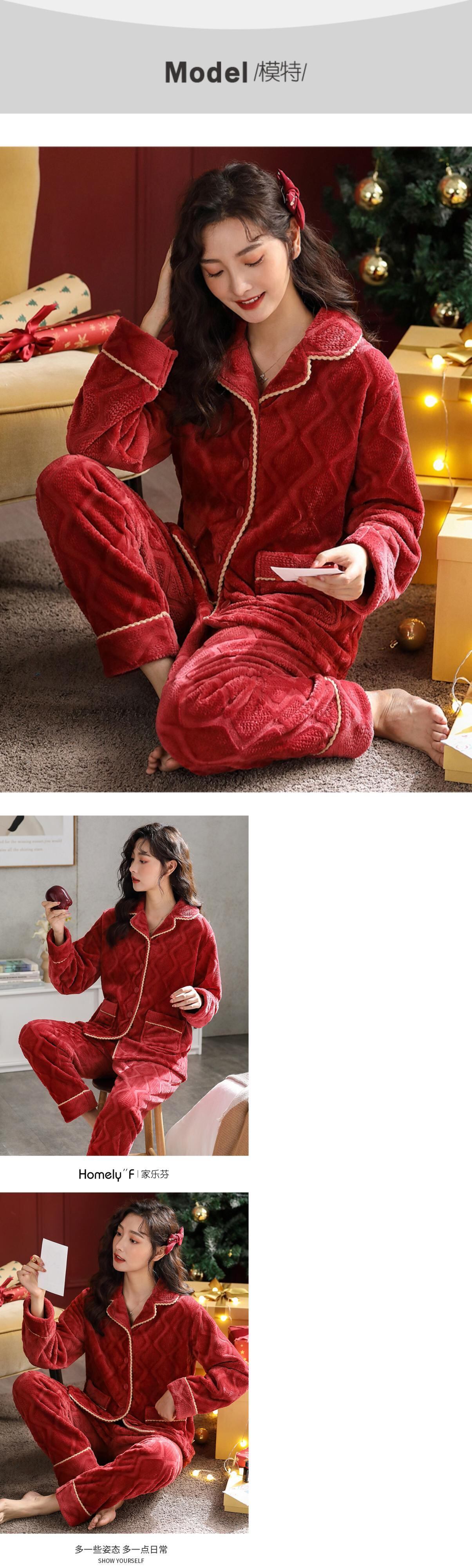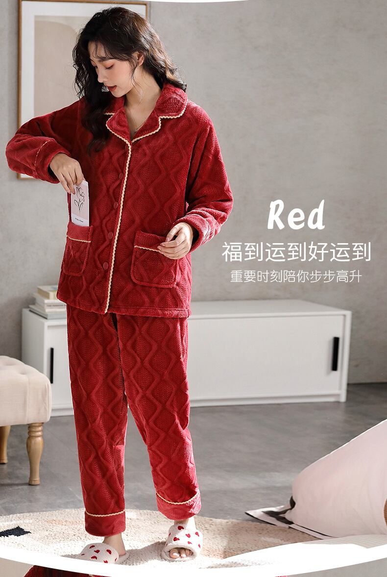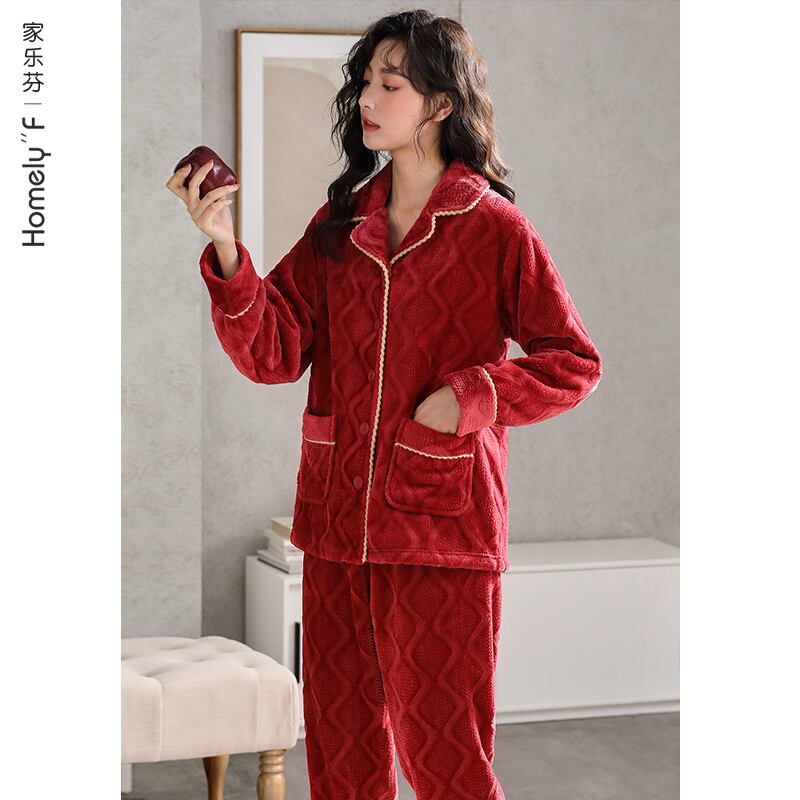 パジャマレディース秋冬フランネル厚手ベルベットコーラルフリース家庭服冬大赤出生年 jial65281356569