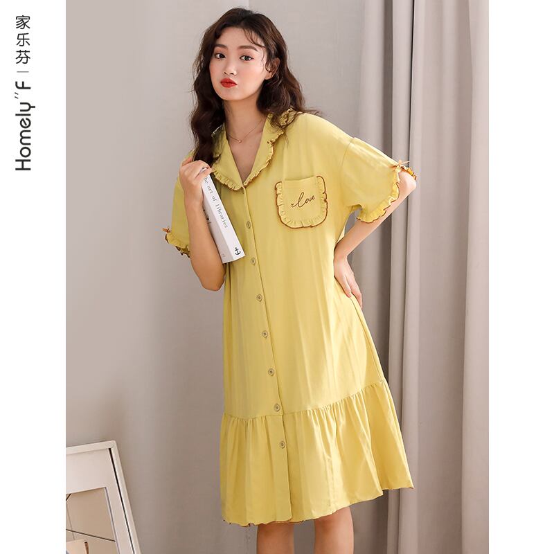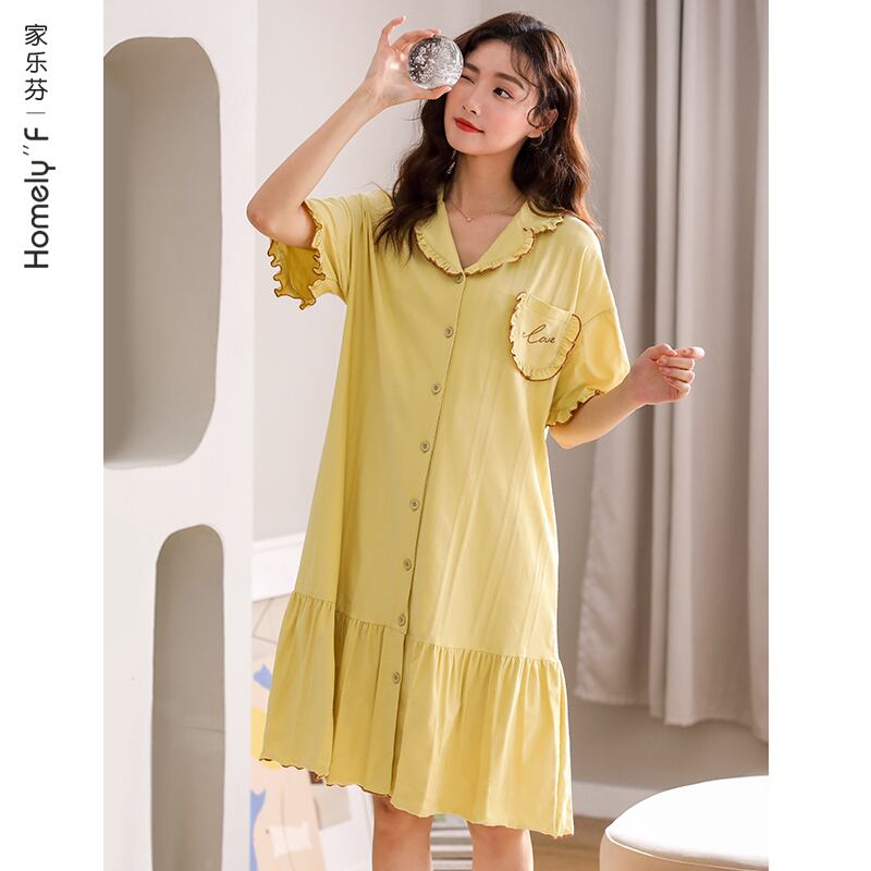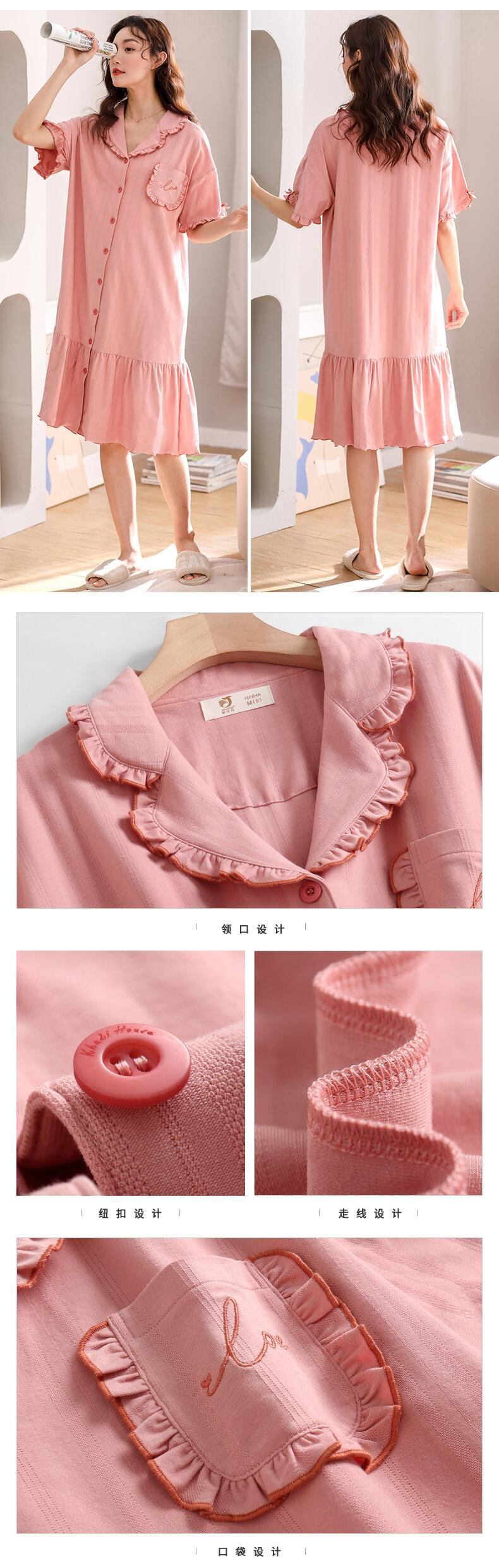 ネグリジェパジャマドレスサマーコットン半袖サマーシンコットンシャツカーディガン風かわいいese jial70643520226