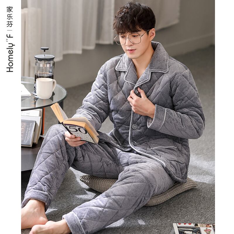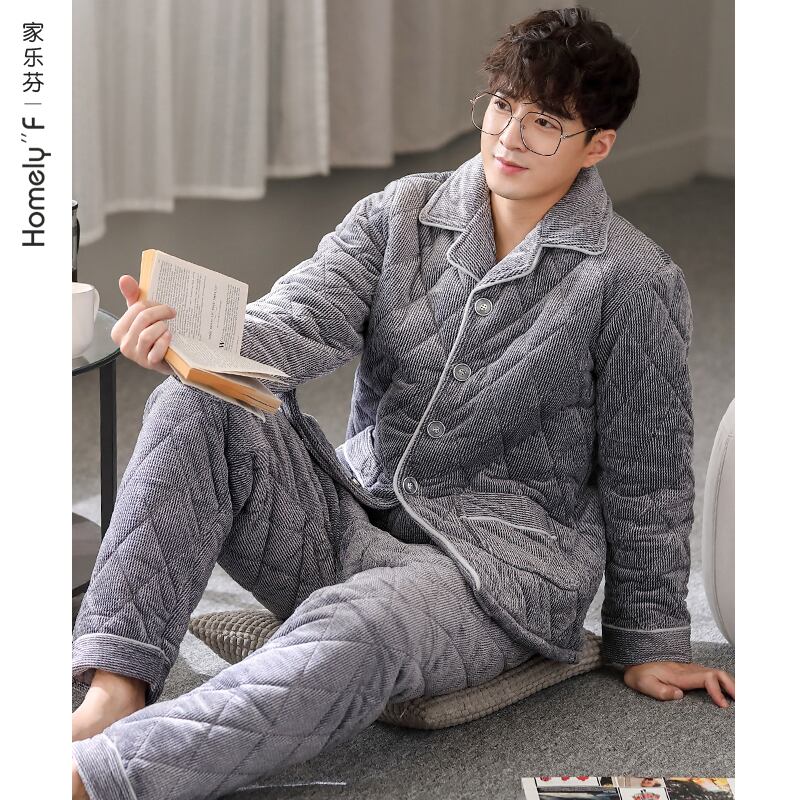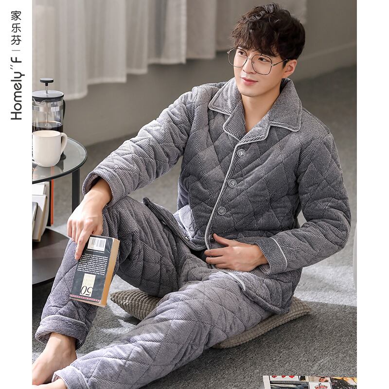 パジャマメンズ冬冬コーラルフリース3層厚手ベルベットキルティングジャケットウォームフランネルホームサービス秋冬 jial35224455929