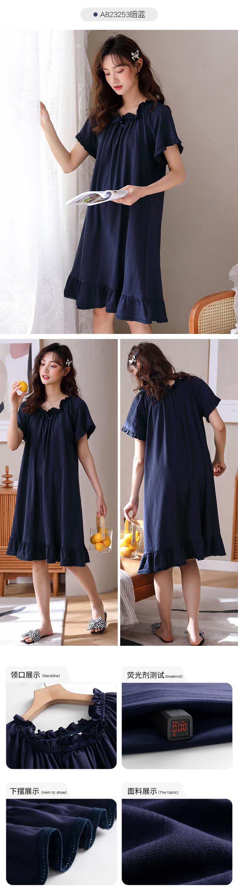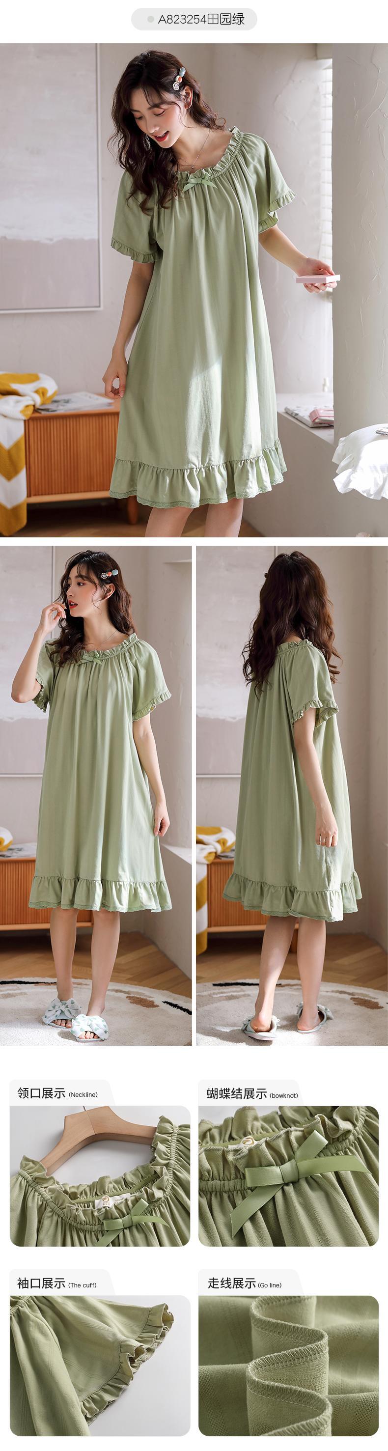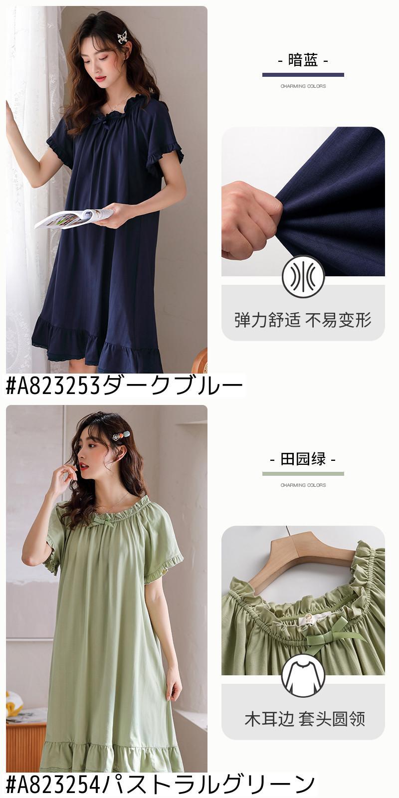 ネグリジェパジャマスカート夏夏コットン半袖薄袖コットンプラスサイズかわいいスタイルロングセクション jial82496334157