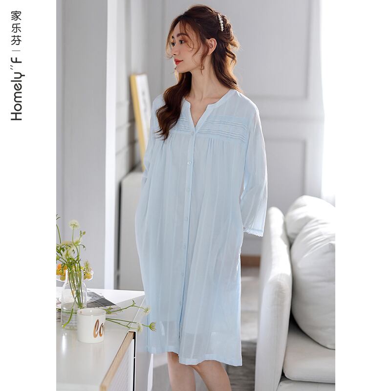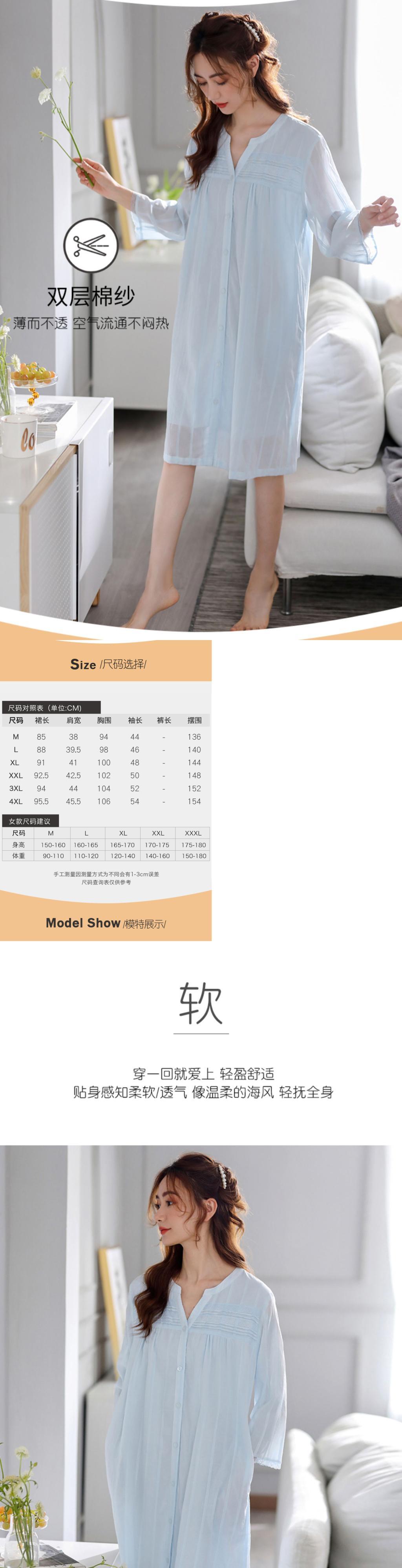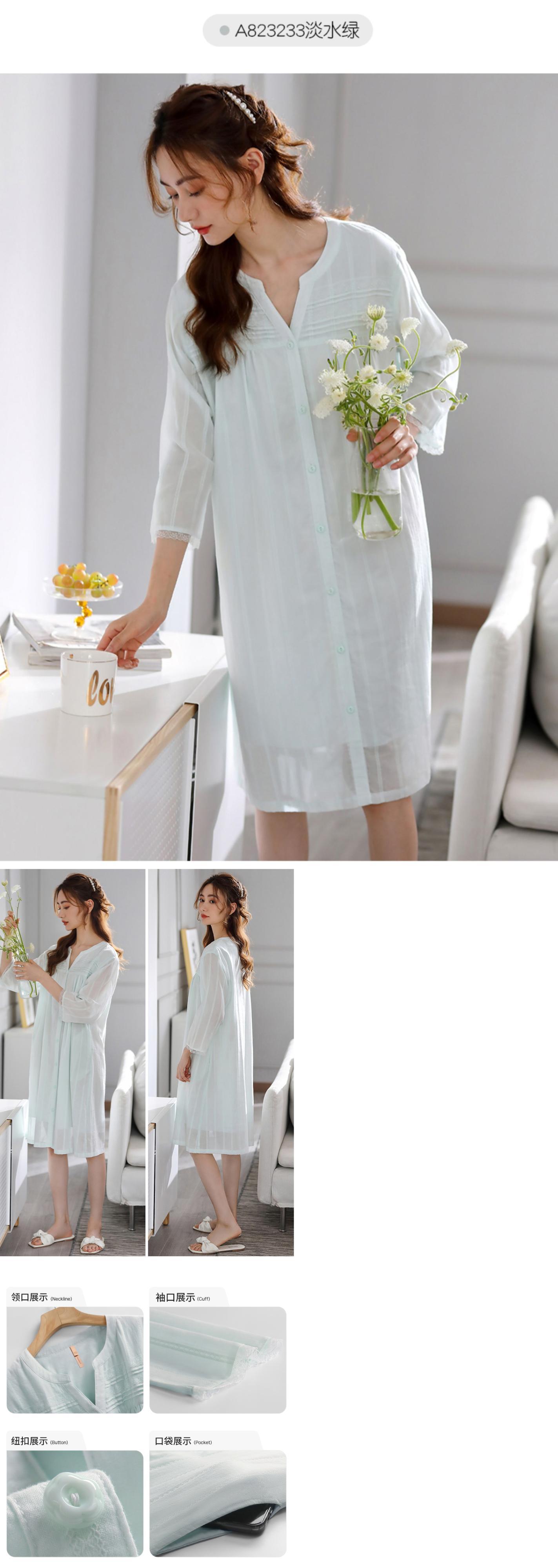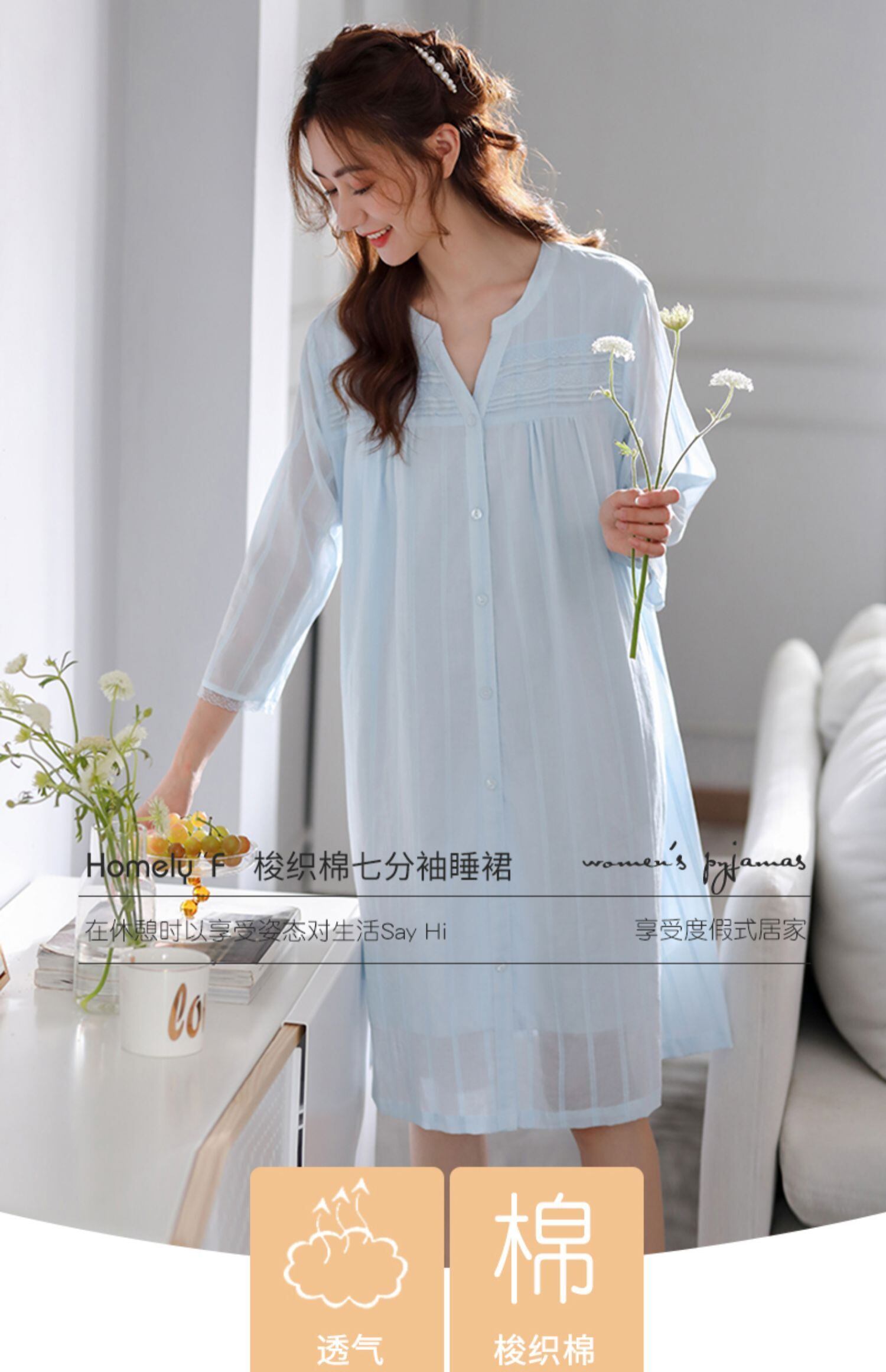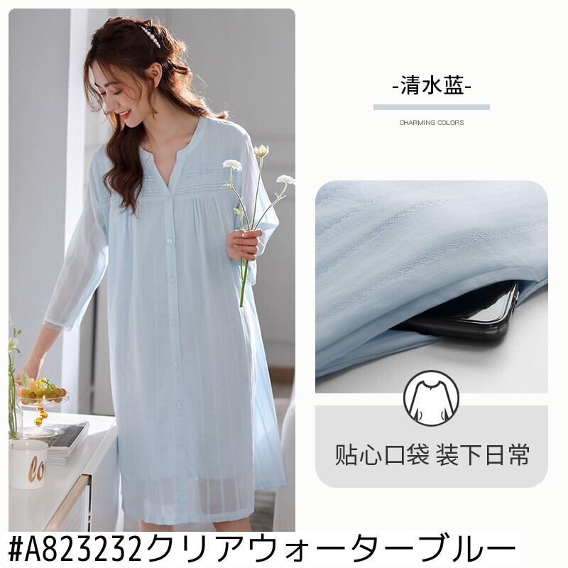 ウーブンコットンガーゼナイトドレスレディースパジャマ春夏コットン七分袖春秋薄手コットンカーディガンホームウェア jial34804567274