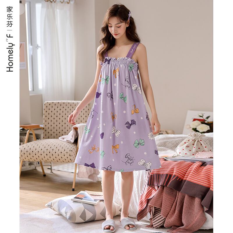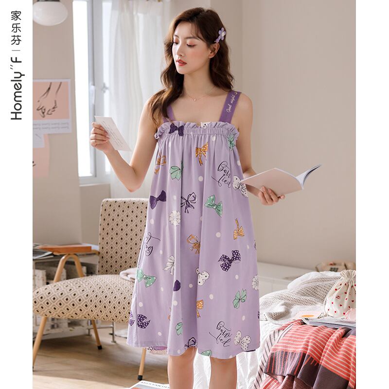 ネグリジェレディースパジャマ夏夏コットンキャミソールノースリーブ薄着ドレスロングキュートプラスサイズ jial65331935594
