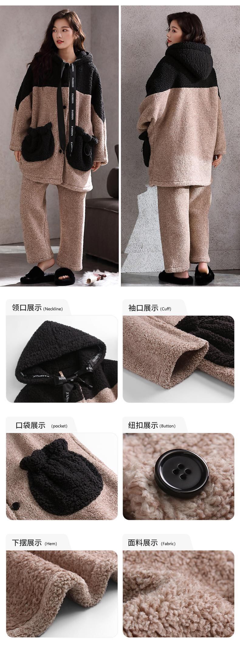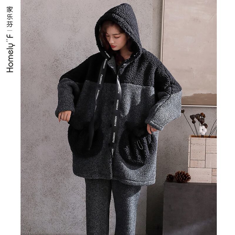 パジャマの女性の秋と冬のスタイルの冬のフランネルの肥厚とベルベットのコーラルフリースの長いセクションは、家庭服の冬のスーツの外で着用することができます jial43915133509