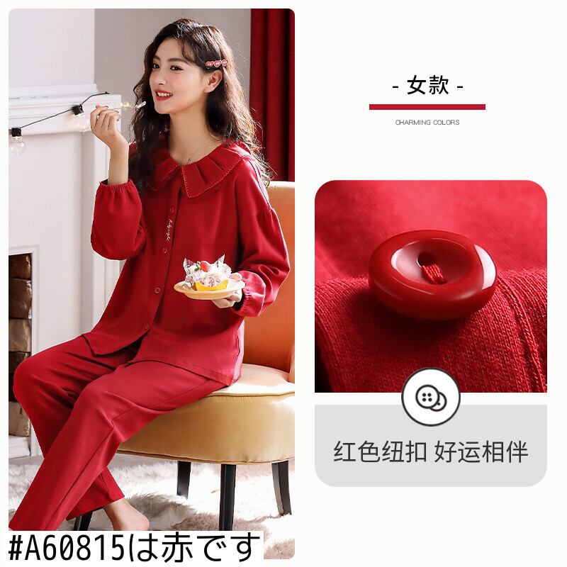 結婚式のパジャマ新婚カップルは大きな赤い綿の長袖の女性の家庭服男性の春と秋の新郎新婦に合います jial72739379687